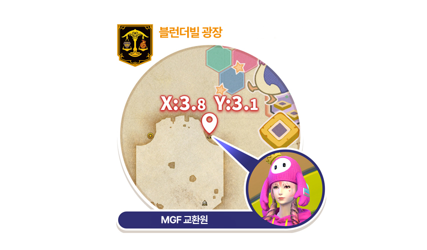 획득한 MGF는 블런더빌 광장에 위치한 MGF교환원을 통해 필요한 아이템으로 교환할 수 있는데요, 젤리빈 털모자와 젤리빈 파카, 젤리빈 바지등 폴가이즈 콜라보를 기념한 다양한 아이템을 비롯해 캐릭터 육성 및 우승을 기념하는 아이템이 다양하게 준비되어 있어 고르는 재미오 놓칠 수 없을 정도입니다.