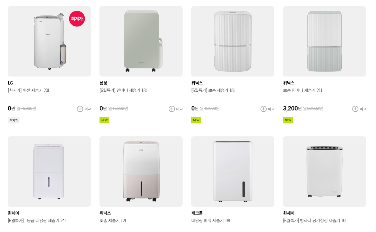 에어컨 효율을 높이고 싶다면 제습기를 함께 활용하는 게 좋은데요, LG헬로렌탈에서는 각기 다른 성능과 효율을 가지고 있는 제품이 다양하게 준비되어 있고, 성능이나 효율 렌털 비용에 대한 부담도 크지 않어 원하는 조건을 바탕으로 꼼꼼하게 비교하고 선택하시는 걸 추천드립니다.
