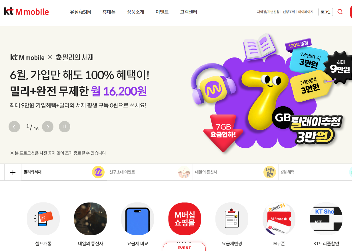 kt M모바일에서는 CU요금제 외에도 밀리어 서재, 멜론, 네이버페이등 다양한 구독 서비스와 결합해 이용 가능한 요금제도 준비되어 있어 선택의 폭이 넓은 점이 장점입니다. 통신비는 줄이고 내게 꼭 맞은 혜택은 꼼꼼하게 챙겨보고 싶다면 kt M모바일 홈페이지에서 요금제를 확인 비교하고 선택해 보시기 바랍니다.
