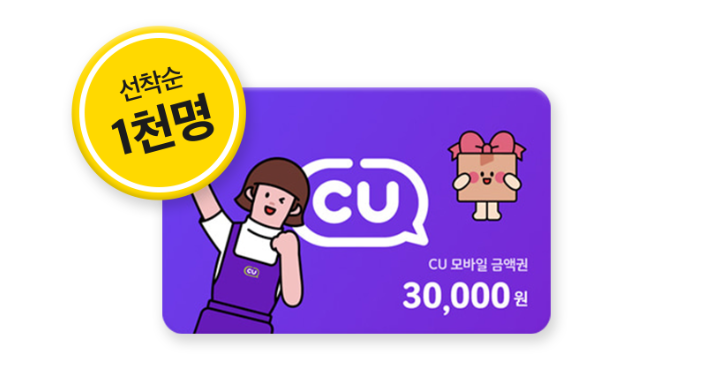 특히 CU요금제 출시에 따른 이벤트도 진행 중에 있는데요, 6월 30일까지 CU요금제에 개통 고객대상 선착순 1천 명에게는 CU모바일 상품권 3만 원을 지급하고 있어 요금제를 고민 중에 있다면 결정을 서둘러야 할 것 같습니다. 빠르게 가입해 선착순 인원에 들어가면 CU모바일금액권 선물도 수령할 수 있으니 말이죠.