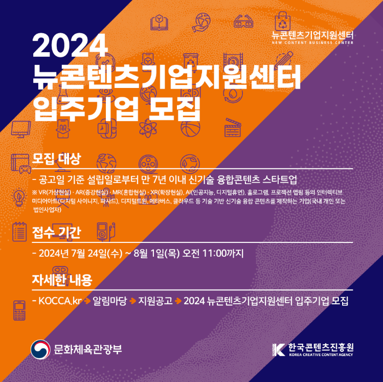 2024 뉴콘텐츠 기업지원센터 스타트업 입주기업 모집 시작