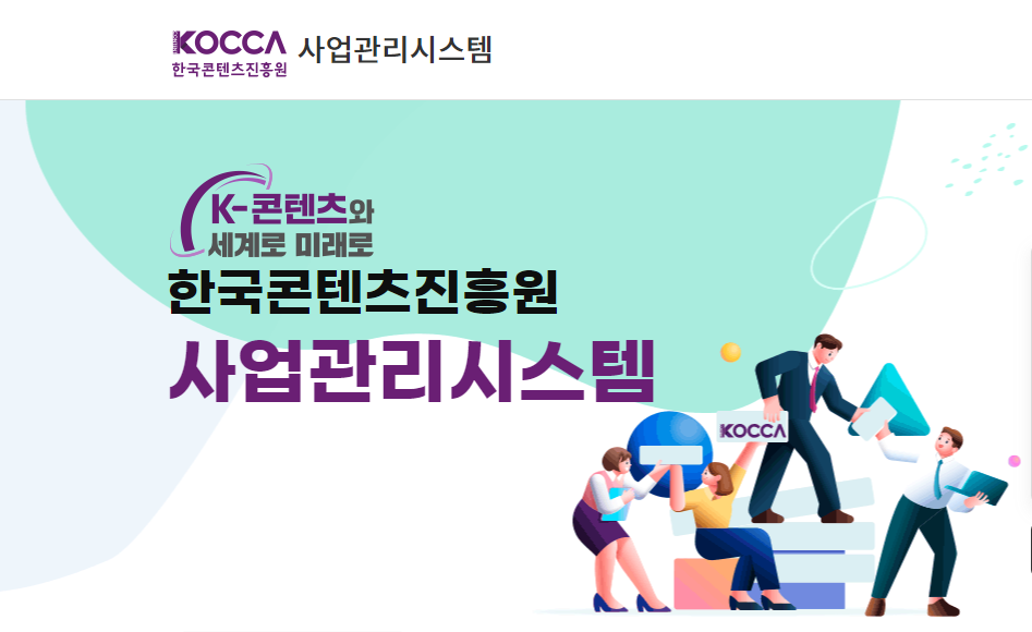 KOCCA 사업관리시스템  지원사업 신청/접수 > 공고조회/신청 메뉴에서