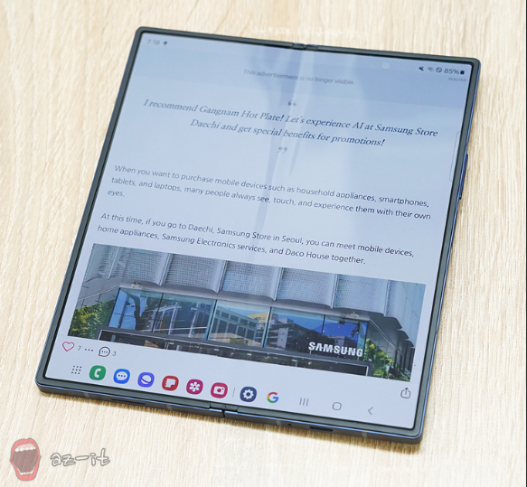갤럭시 Z폴드6는 기존 모델보다 더 얇고 가벼워져 주머니에 쏙 들어가는 슬림한 디자인이 특징입니다. 사용자의 편의에 따라 한눈에 쏙 들어오는 화면을 활용하거나 넓은 화면을 선택해 사용할 수 있어 상황에 따라 편리하게 이용 가능한 점이 가장 큰 장점입니다.