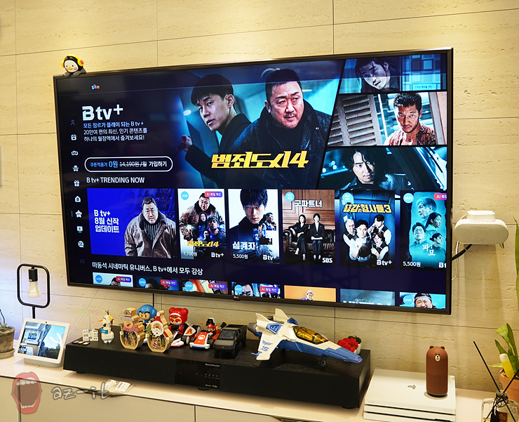 SK브로드밴드 B tv+는 B tv 대표 월정액 콘텐츠를 하나의 월정액에 모두 담아 영상을 비롯해 방송, 키즈, 애니메이션, 다큐까지 포함한 약 20여만 편에 달하는 콘텐츠를 한 번에 즐길 수 있는 점이 특징입니다. 즐거움은 더하고 비용 부담은 덜어내 많은 분들의 선호하는 인터넷 TV라고 할까요?