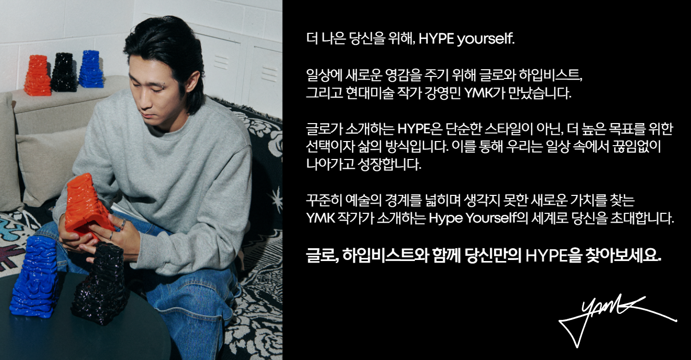 글로 전자담배에서 진행하는 더 나은 당신을 위해 HYPE yourself 캠페인은  하입비스트와 현대 미술 작가 강영민과 콜라보로 진행되었습니다. 한정판으로 준비된 거치대는 단순한 거치대가 아닌 강명민 작가의 대표작 AFF컬렉션의 아이덴티티를 살린 작품으로 구성되어 특별함을 더해주었습니다.