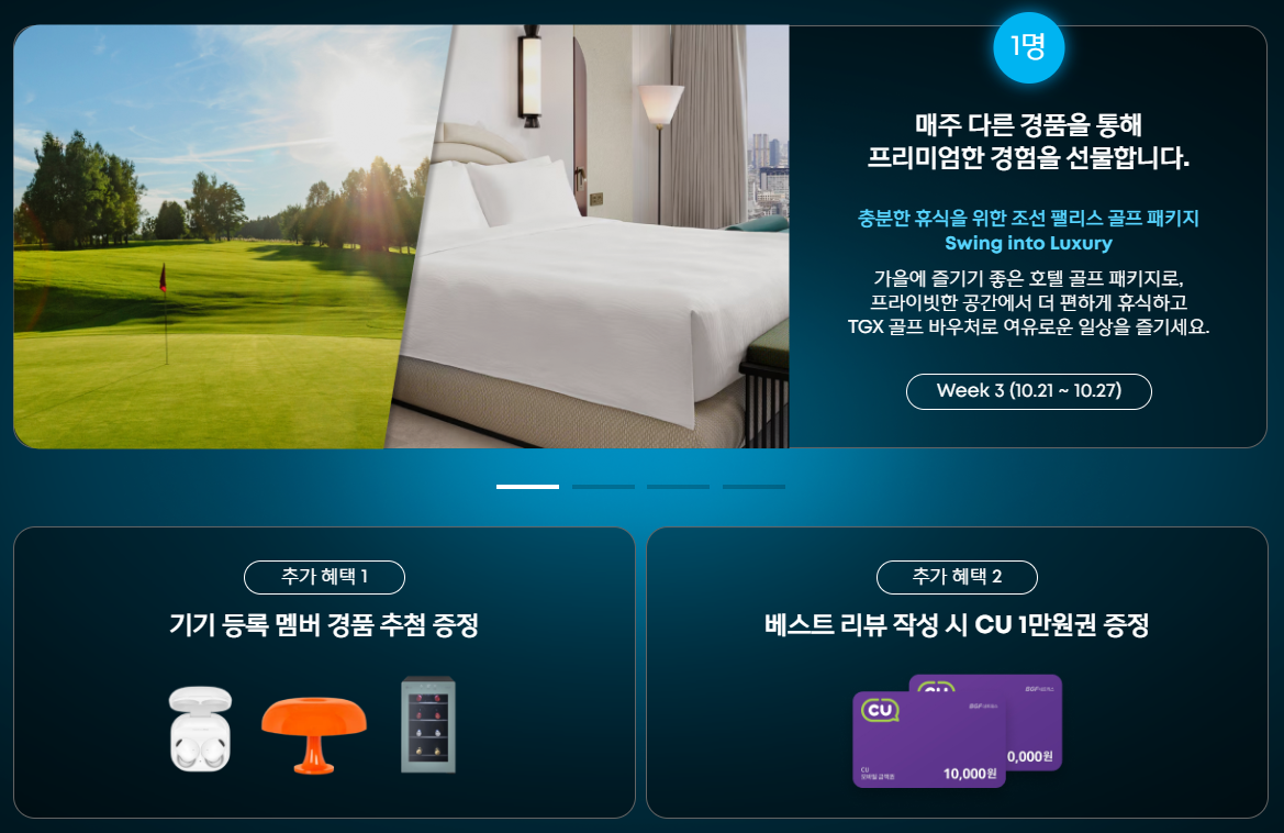 NEW 하이퍼 시리즈 최대 48% OFF 이벤트가 진행되는 동안 제품을 구매한 인원중 추첨을 통해 추가 선물도 지급되어 행운의 주인공이 되는 경험을 누릴 수 있습니다. 매주 다른 경품을 통해 프리미엄 한 경험을 선사하는 특별한 선물을 포함해 기기등록 시  추첨을 통해 지급되는 선물과 베스트 리뷰어 선물까지 안 챙겨 볼 수 없겠죠?