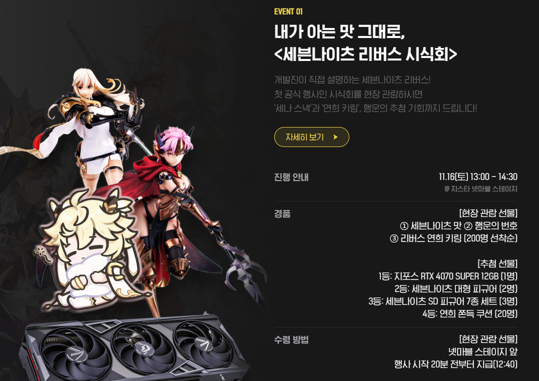 | 지스타2024 넷마블 세븐나이츠 리버스 시식회 정리 (0) | 2024.11.16 |