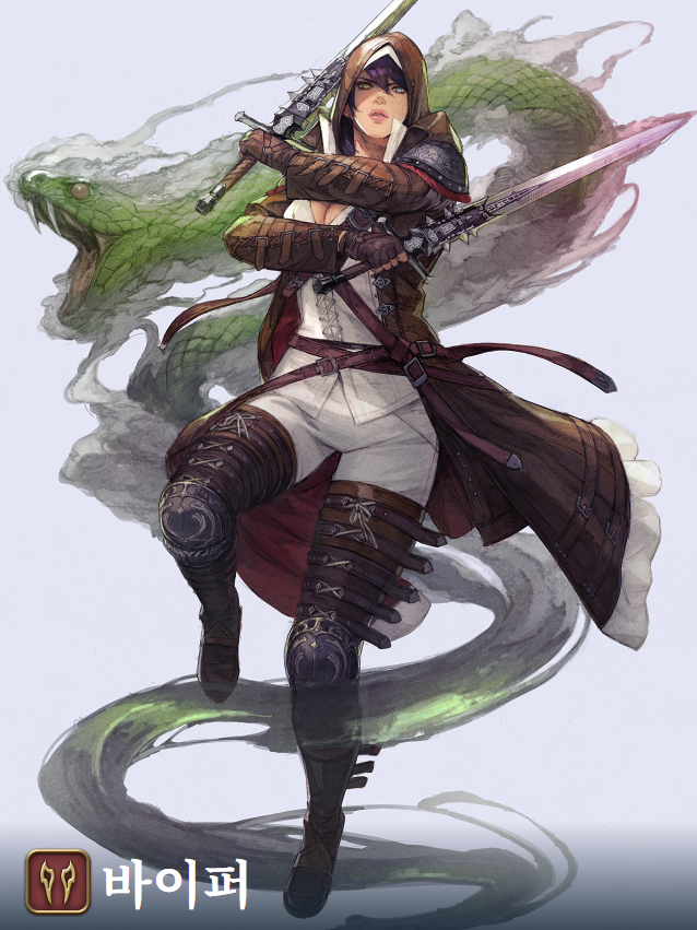 신규직업 바이퍼와 픽토맨서도 등장합니다. 바이퍼는 투랄 대륙의 사냥꾼들이 개발하고 계승해 온 전투 기술을 구사하는 직업으로 한손검을 양손에 쥐는 이도류와 두 개의 겸을 연결한 합체검으로 근접 공격을 취하는 점이 특징을 가지고 있는데요, 소울 크리스탈에 깃든 조상령의 힘을 끌어내 일시적으로 자신의 힘을 강화할 수 있는 특징을 가지고 있습니다.