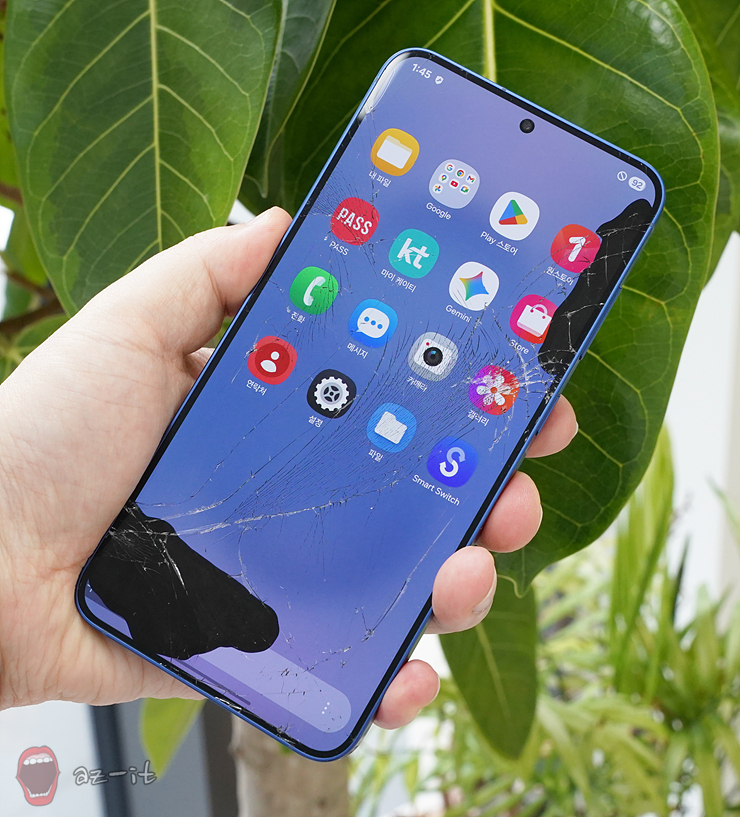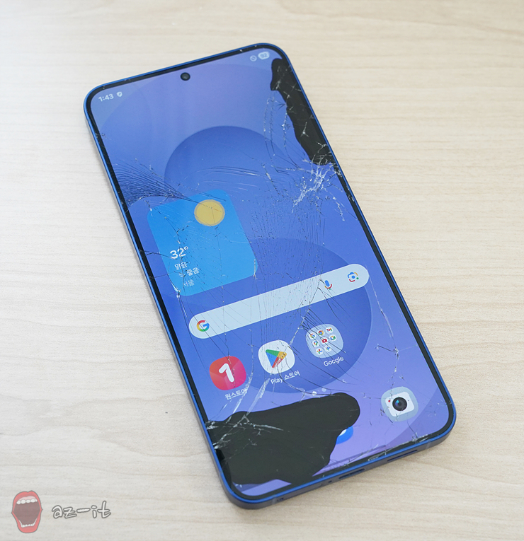 당시 파손된 핸드폰입니다. 말 그대로 액정이 파사삭 부숴지고 본체 뒷면까지 벌어진 상태였습니다. 언제 핸드폰을 사용하지 못하는 상황이 오더라도 이상하지 않을 정도였어요. 문제는 한시라도 빨리 AS를 받아야 하는데 하필이면 중요한 선약이 있어 바로 AS센터를 방문할 수가 없는 상황이었습니다.
