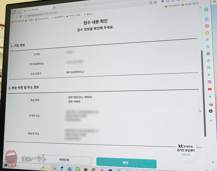 약속도 있지만 조금이라도 빨리 수리를 해야 중요한 연락을 놓치지 않을 수 있기에 마음이 급했습니다. 당장 AS센터를 갈 수는 없고 핸드폰은 망가져서 수리가 필요하고, 어떻게 정리해야 좋을까 고민하던 찰나 KT 파손 수리 대행 서비스가 생각나더군요. KT365 폰케어에 가입되어 있으면 별도의 비용 없이 가능해 이용해 보았습니다.