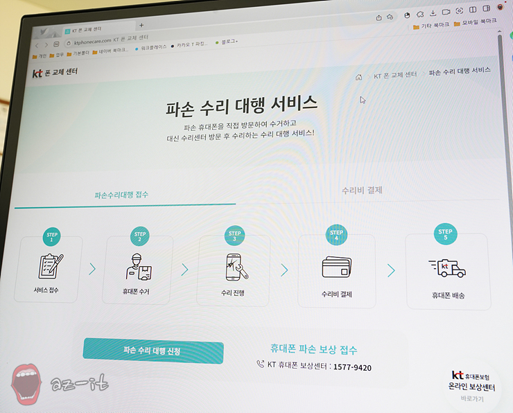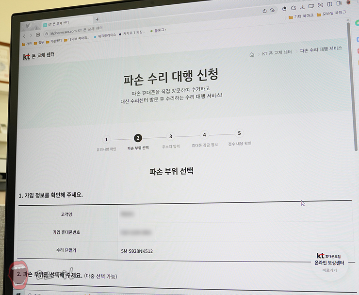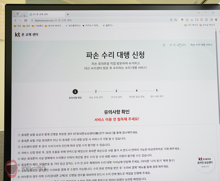 약속도 있지만 조금이라도 빨리 수리를 해야 중요한 연락을 놓치지 않을 수 있기에 마음이 급했습니다. 당장 AS센터를 갈 수는 없고 핸드폰은 망가져서 수리가 필요하고, 어떻게 정리해야 좋을까 고민하던 찰나 KT 파손 수리 대행 서비스가 생각나더군요. KT365 폰케어에 가입되어 있으면 별도의 비용 없이 가능해 이용해 보았습니다.