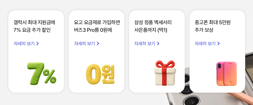 특히 최신 모델 + 공시지원금 + 요금 할인, 액세서리 사은품, 워치7 0원 구성 등 포함된 점이 상당히 매력적으로 다가오는 조건이 아닐까 생각됩니다.