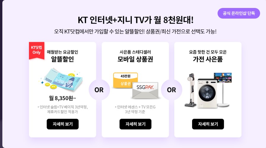 KT에서는 온라인 단독 프로모션으로 인터넷 + TV 신규 가입 고객에게 다양한 혜택을 제공하고 있어 자세히 정리해보았습니다.