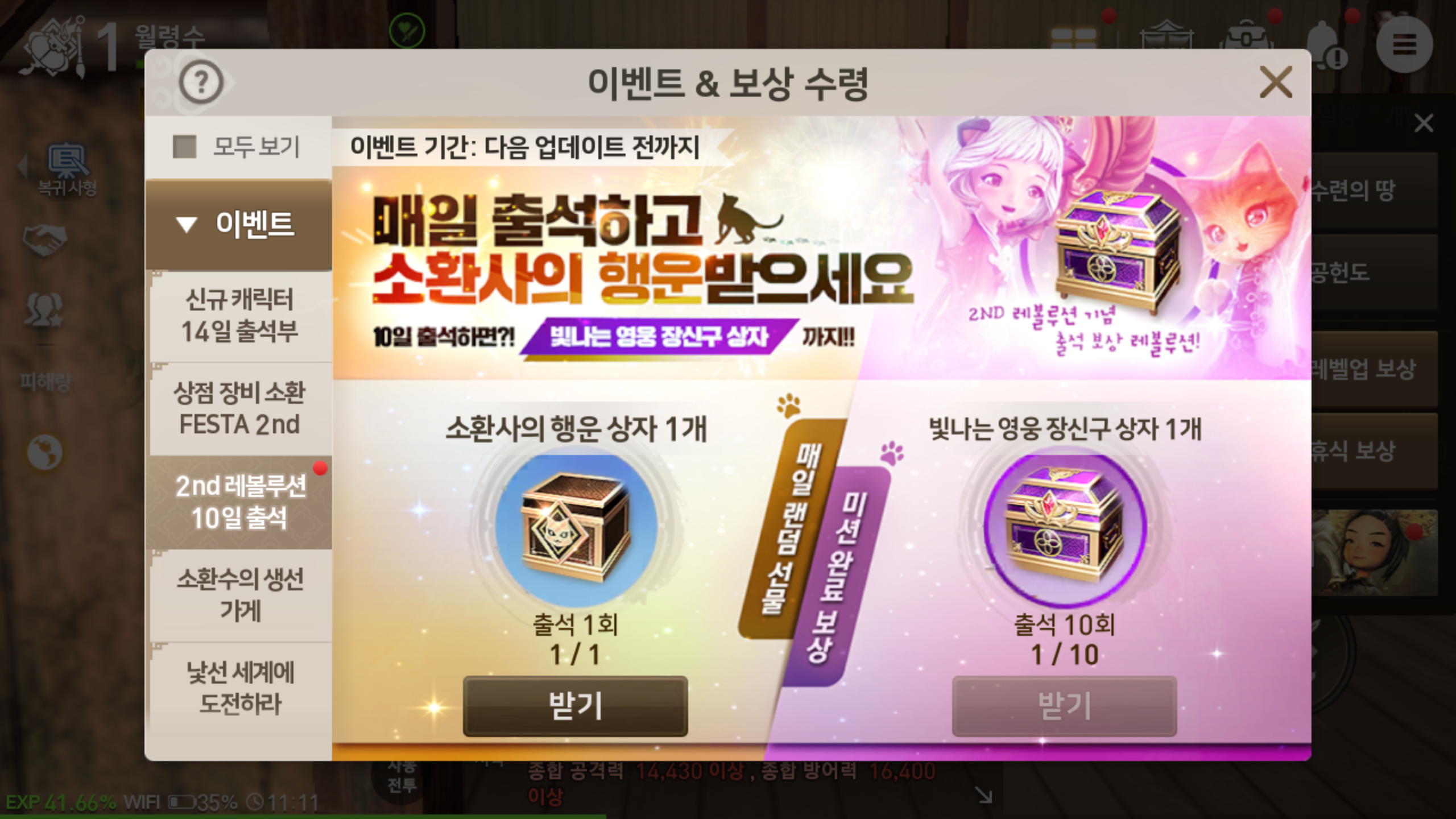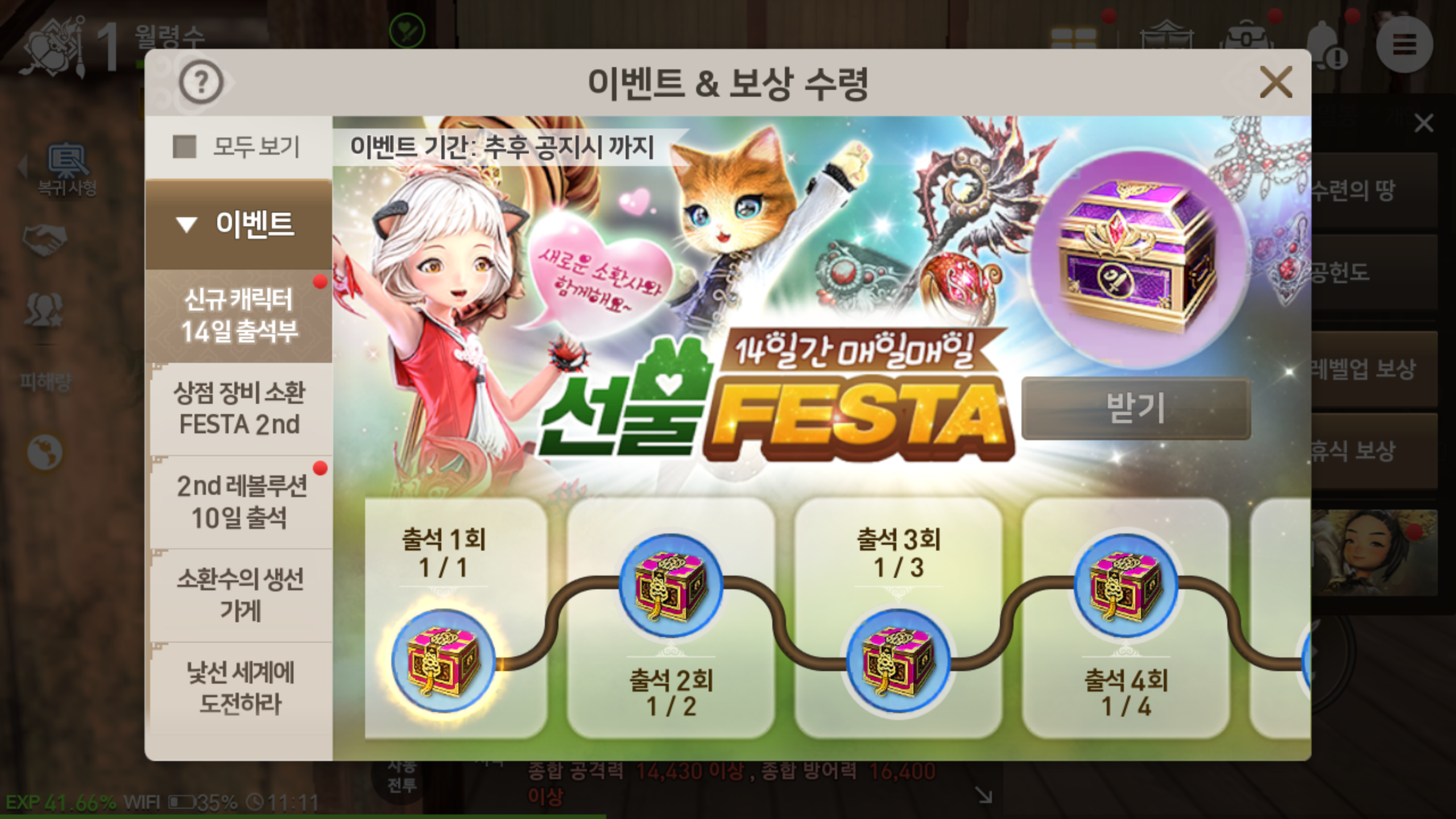 출석만해도 주어지는 보상은 14일간 매일매일 주어지는 선물 FESTA를 통해서도 확인 가능합니다. 출석만 잘해도 주어지는 선물이 가득한데요, 보다 좋은 아이템을 획득 소환사를 육성하는데 도움을 받을 수 있어 보다 별다른 과금 없이도 충분히 빠른 성장이 가능합니다.