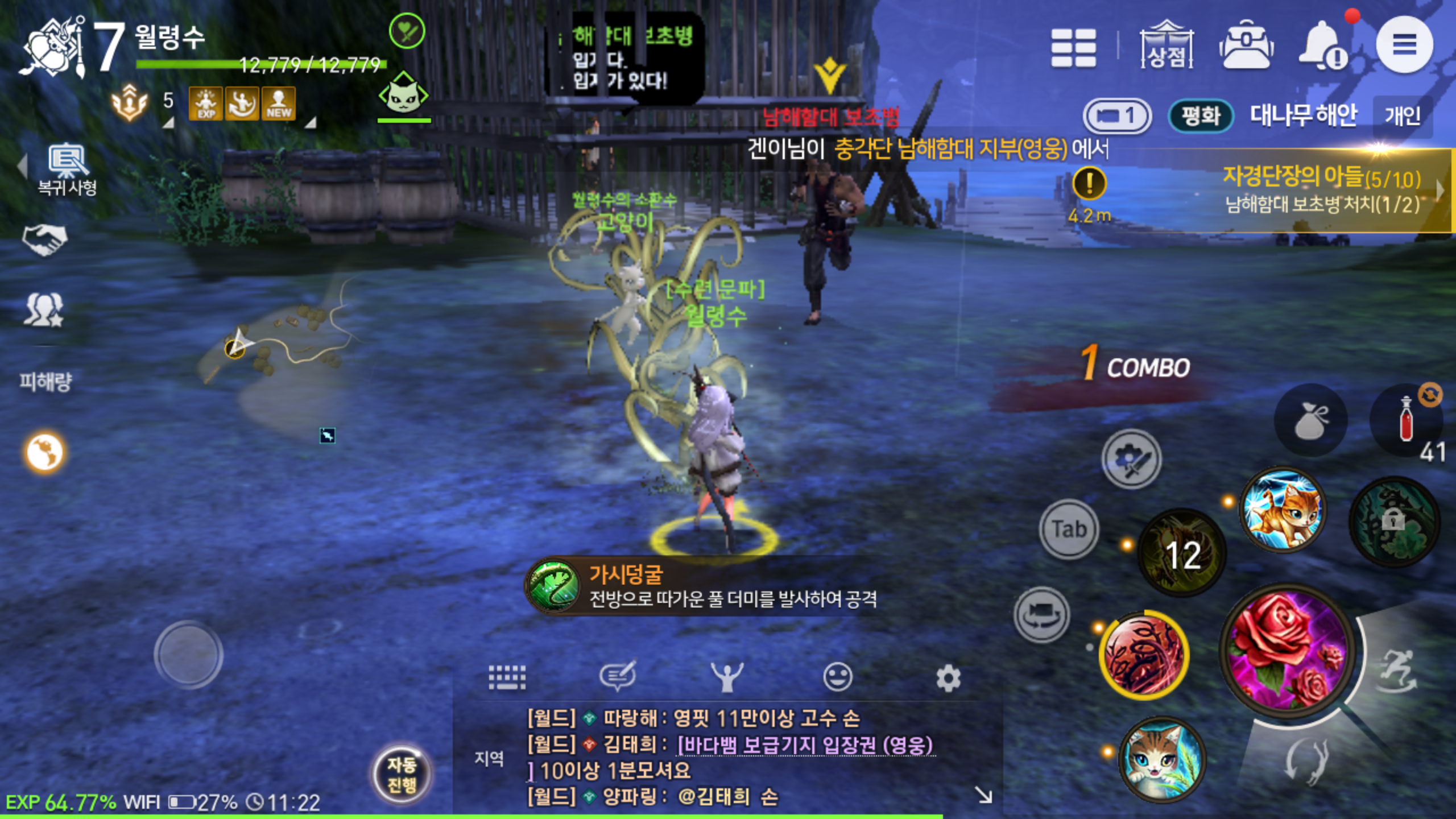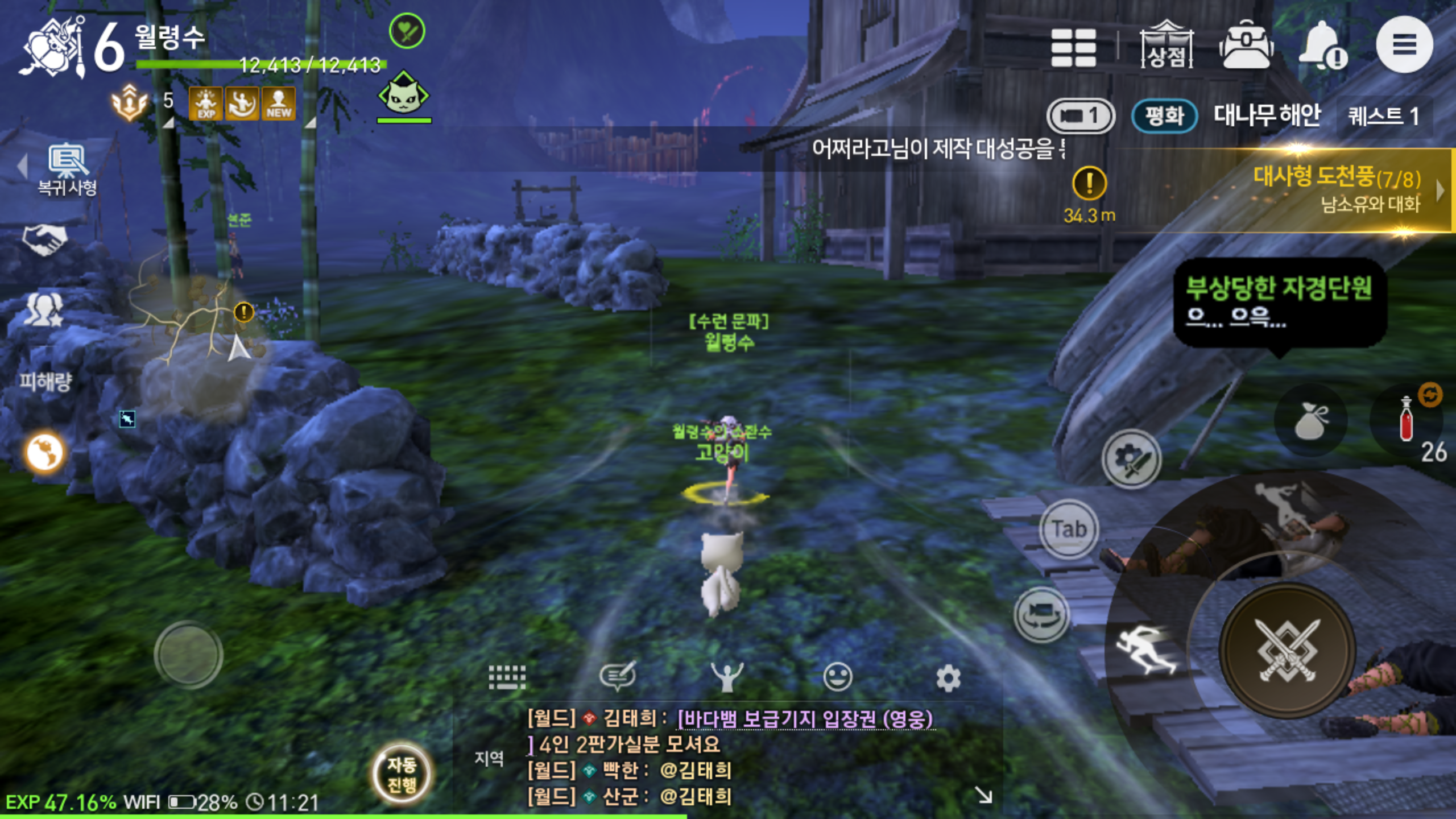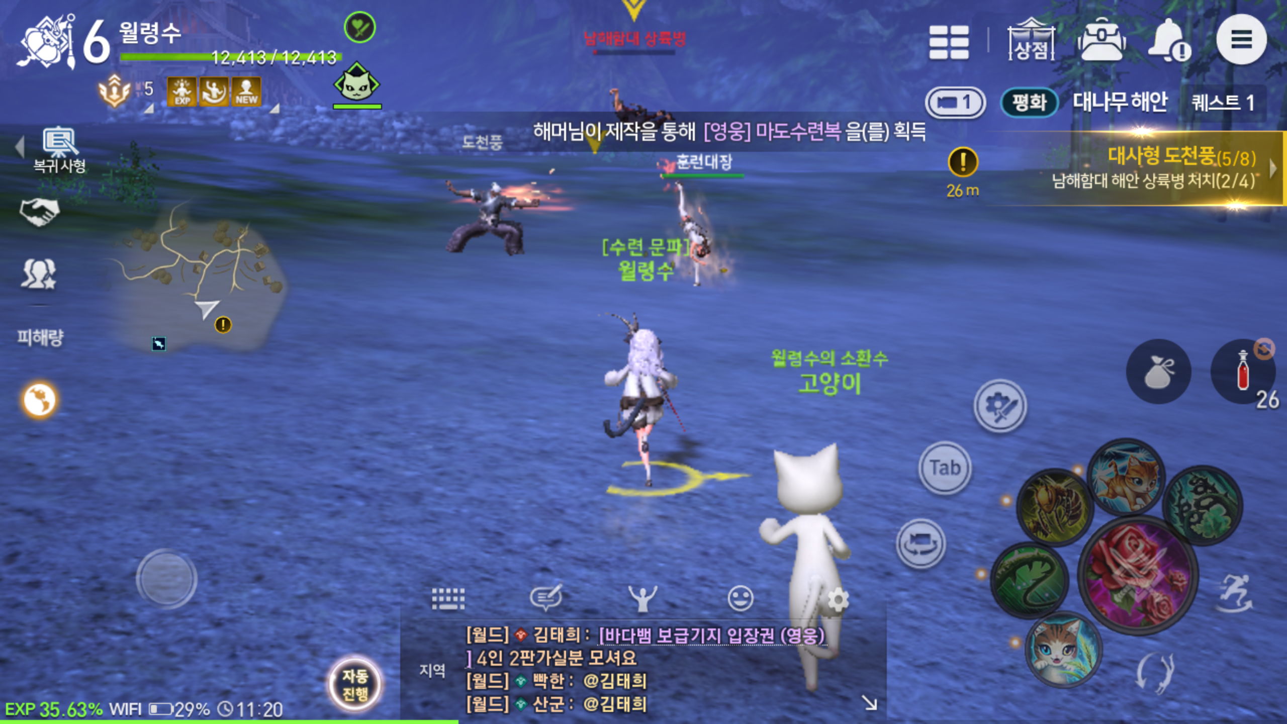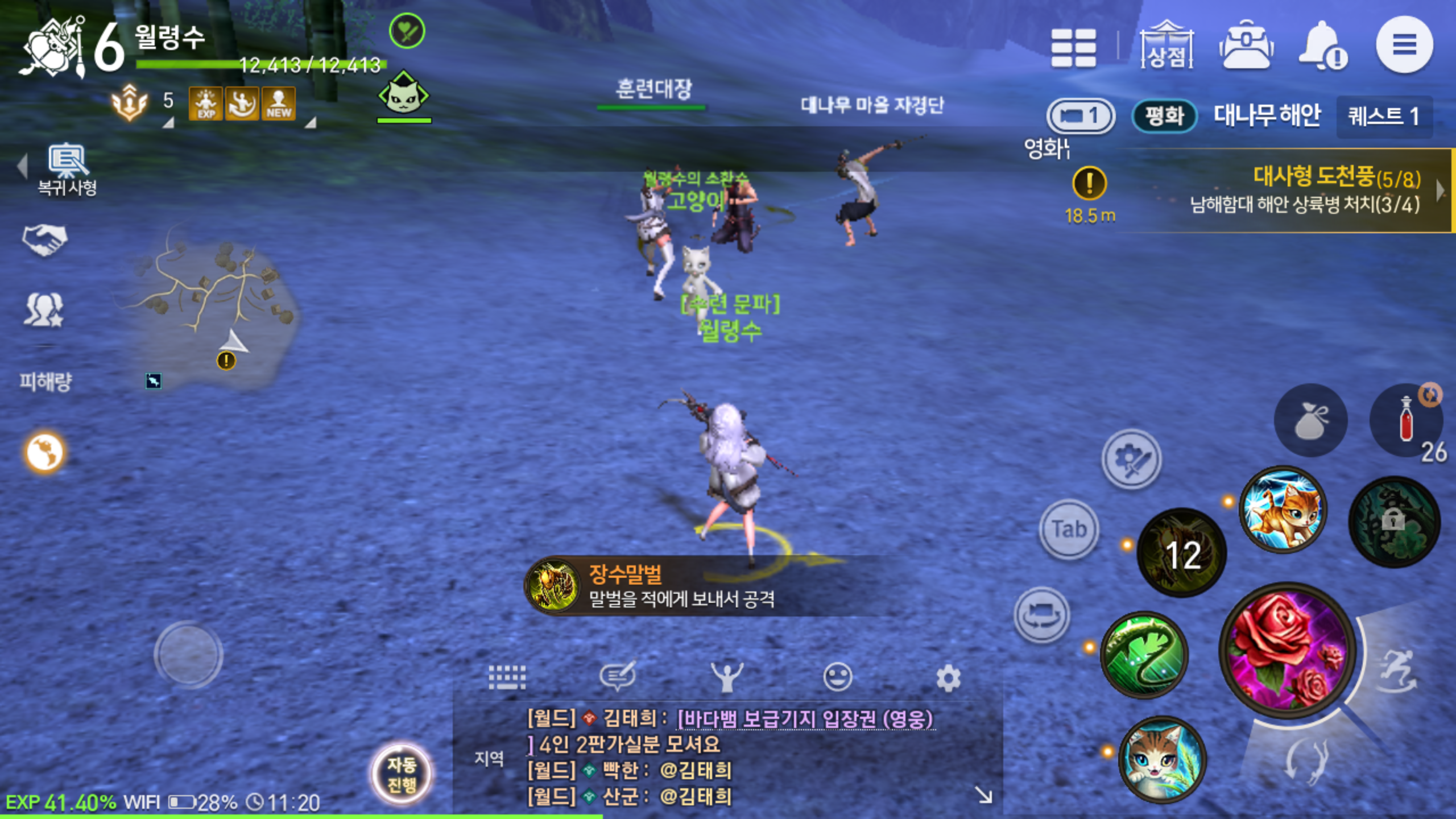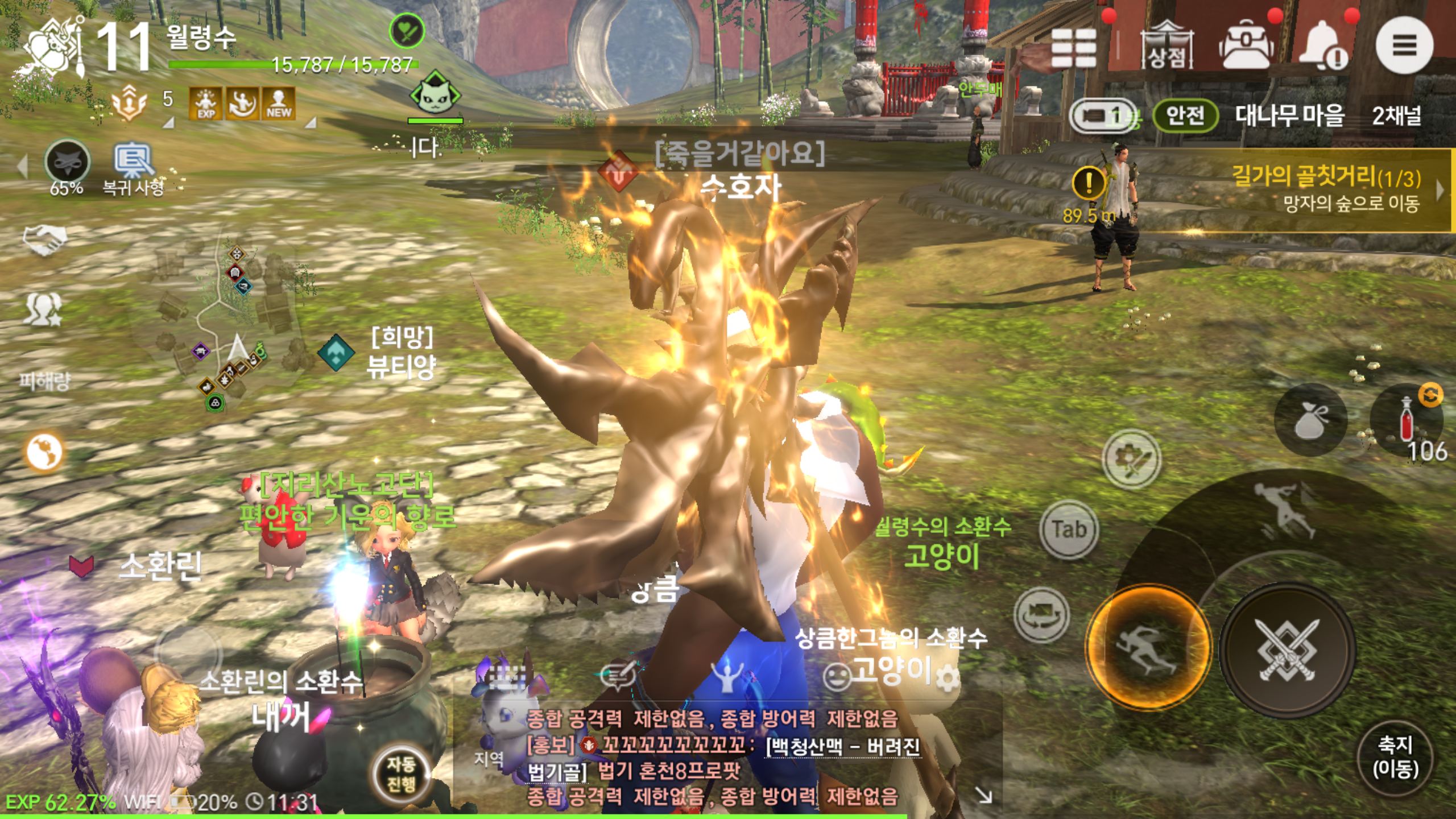 저렙일때는 빠르게 레벨업하는 재미가 쏠쏠한데요, 소환사의 경우 자연의 힘을 이용한 공격이 보여주는 재미도 있지만 평소엔 동행하면서 외롭지 않게 해주다 전투가 일어나면 앞장서서 함께 싸워주는 모습이 든든하게 느껴질 정도입니다. 전투도 제법 잘 하는 모습이고 말이죠.