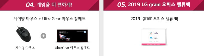 마지막으로 LG 울트라기어 17 예약판매를 진행한 분들에게는 게이밍마우스와 마우스 장패드 그리고 2019 gram 오피스 밸류팩이 주어집니다. 오피스 밸류팩의 경우 산돌구름 PLUS 클라우드 폰트 서비스 1년 이용권, Ezphoto3 VP 홈 에디션 ESD 1PC 영구 사용권, 한컴오피스 2018 가정 및 학생용 다운로드형 1PC 영구 사용권, 한컴 넷피스 24 PRO 1년 이용권이 들어 있어 노트북을 사용하는데 불편함 없이 활용 가능합니다. 이런 혜자스런 혜택 놓칠 수 없겠지요?