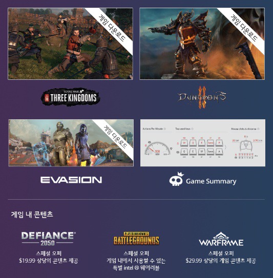 GEAR UP For BATTLE 패키지에 해당하는 7종의 게임 패키지는 현재 공개되어 확인 가능한데요, TOTAL WAR, THREE KINGDOMS, DUNGEON3, EVASION 게임 다운로드가 가능하고 Game Summary를 비롯한 DEFIANCE 2050, BATTLEGROUNDS, WARFRAME 콘텐츠가 제공됩니다.
