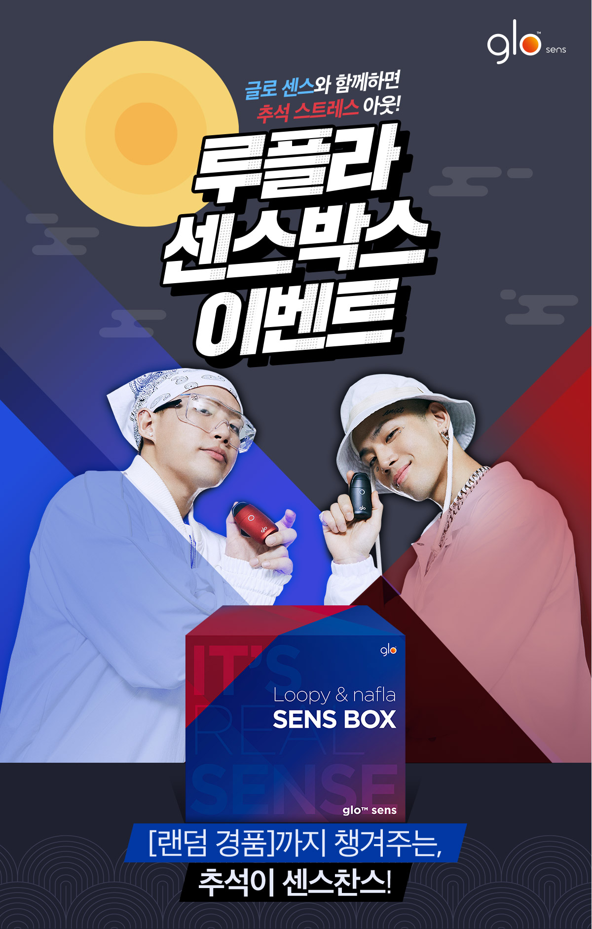 추석을 앞두고 곳곳에서 특별한 이벤트가 진행 중입니다. 다양한 이벤트 중에서도 눈에 띄는 추석이벤트가 있는데요 글로에서 진행하고 있는 < 루플라 센드박스 이벤트 >가 주인공입니다. 쇼미더머니에 출연해 실력을 인정 받은 루피와 나플라가 홍보모델로 나서 보여주고 있는 것은 기본 노래까지 나왔다고 하는군요.