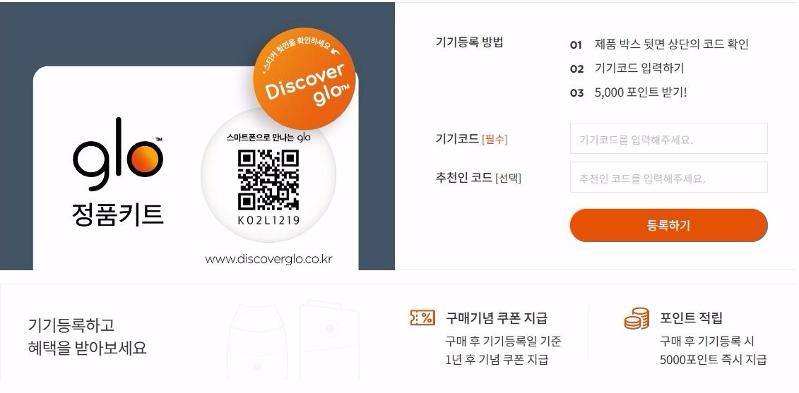 글로 센스를 구입하기에 앞서 이미 사용중인 글로 제품이 있다면 기기등록을 통해 5,000포인트를 받고 할인된 비용으로 구입 가능합니다. 획득한 포인트를 이용해 제품을 구매해도 랜덤박스 이벤트에 참여 가능한 만큼 보다 합리적으로 구매하고 선물도 받고 싶은 분들이라면 이번 기회를 놓치지 마시기 바랍니다.