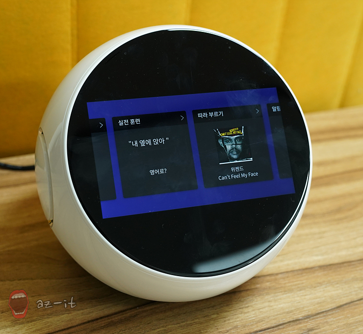 구모양에서 화면이 보여지는 부분만 평평하게 구성된 형태를 가지고 있는 오케이닥터 AI 홈 어학기. 영어를 배우는데 도움이 되는 것이 무엇보다 중요하지만, 화이트와 블랙 색상으로 심플하면서도 유니크 한 디자인은 집안 어디에 두어도 아쉬움이 없을 정도 입니다.