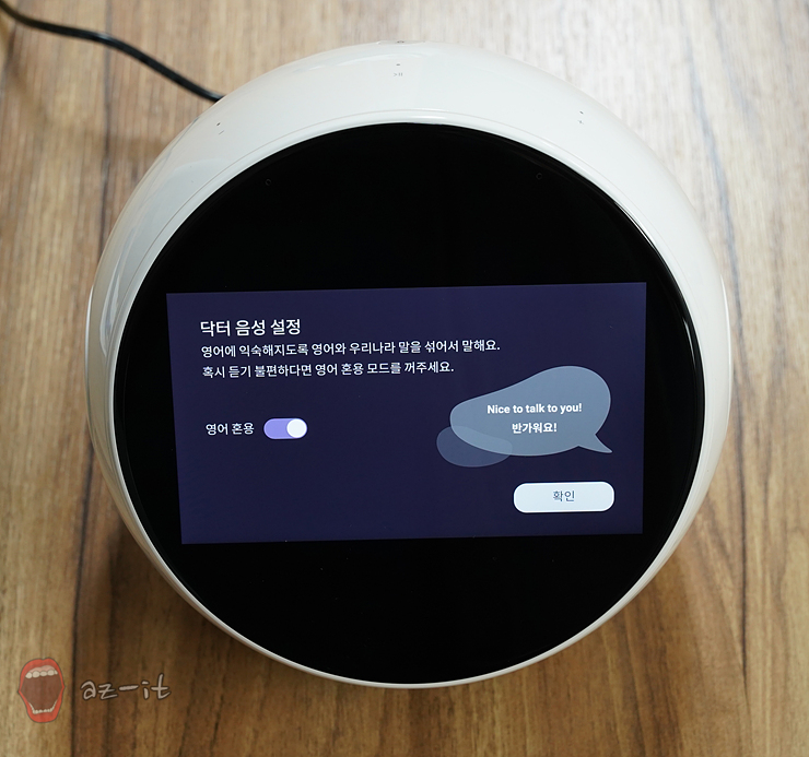 집안에서 생활하면서 오케이닥터 AI 홈 어학기를 활용한 본격적인 영어 학습에 들어가기 전 와이파이 설정을 비롯한 필요한 설정들을 해주었습니다. 사용자 계정부터 닥터 음성설정까지 체크해 주었는데요, 영어에 익숙한 여부에 따라 영어와 우리나라 말을 섞어서 할지 여부를 결정할 수 있었습니다.