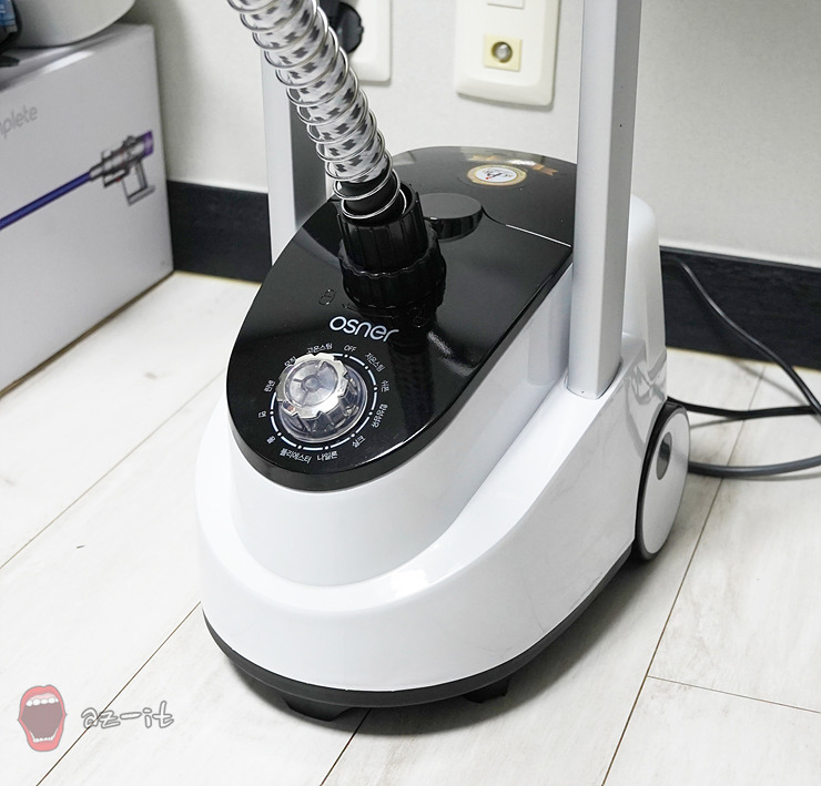 스탠드형 스팀다리미를 사용하는데 있어 아쉬운 점이 있다면 바지 주름을 잡아주거나 약간의 힘을 주어 다림질이 필요한 경우 지지할 수 있는 곳이 없다는 점인데요, 오스나 아이프론의 경우 다림판이 함께 있어 주름을 잡아주기에도 좋고, 면직이나 모직같은 옷을 다림질 하기에도 지지대가 있어 유용합니다.