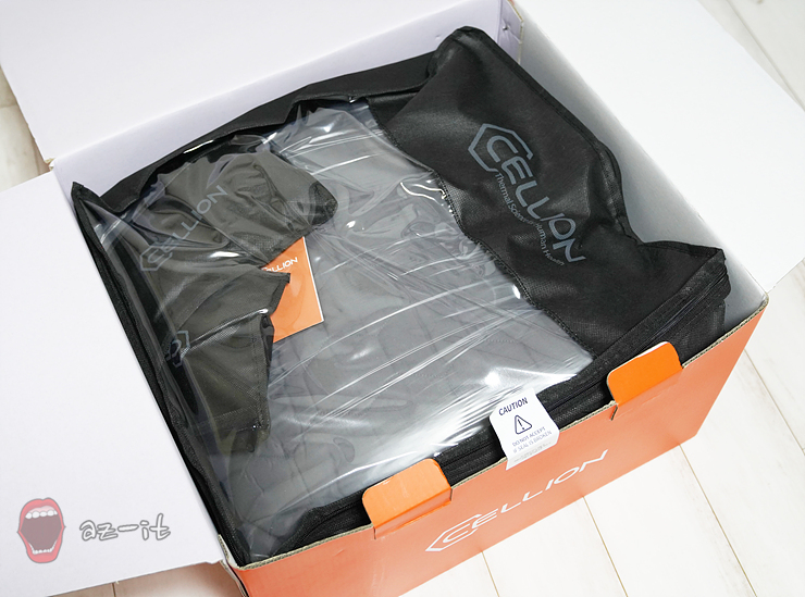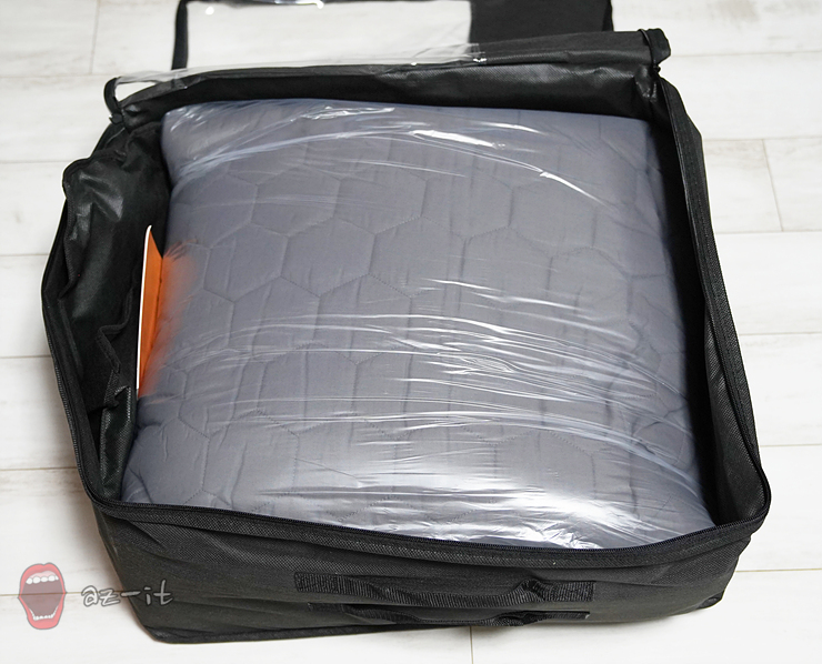패키지박스를 열어보면 DC 프리미엄 온열매트 셀리온이 들어 있는 부직포 파우치를 확인할 수 있습니다. 사계절 내내 사용하는 경우도 있지만 쌀쌀한 날씨에만 사용하는 분들의 경우 보관하기에도 용이해 별도의 보관용 파우치를 구매하지 않을 정도 입니다.