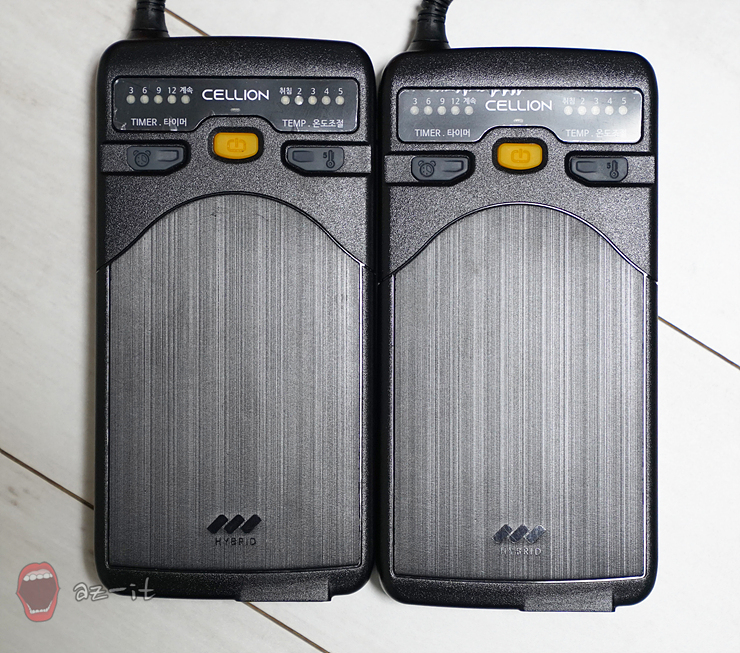 퀸사이즈 모델의 경우 통합 조절기가 좌우에 하나씩 두개가 들어 있었습니다. 아무래도 하나로 통합해 온도를 조절하기 보다 양쪽으로 구분되어 사용자에게 맞는 온도를 맞춰 사용하는 것이 여러모로 유용한데요, 조절기만 두개로 나뉘어져 있는 것이 아니라 전원 플러그도 두개로 구분되어 있어 각각의 설치가 필요합니다.
