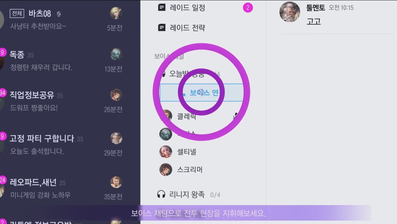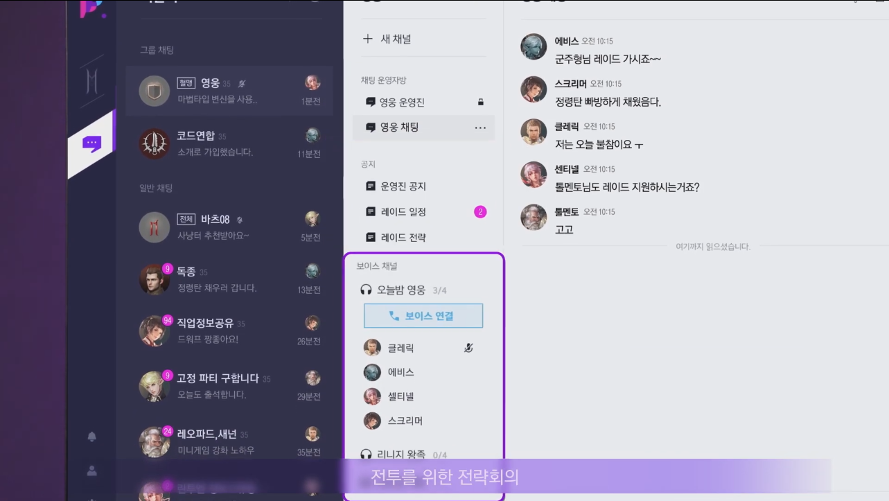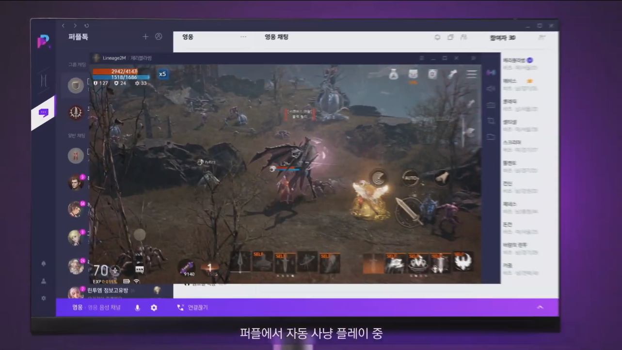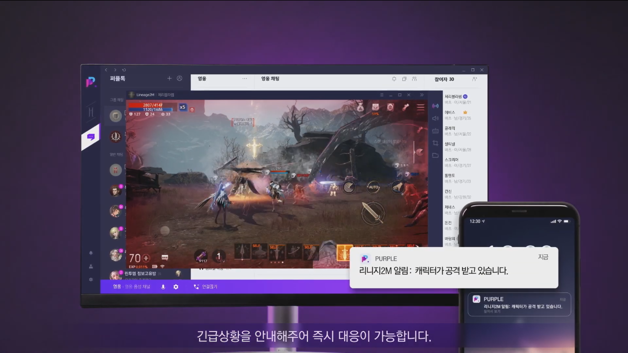 리니지2M하면 빼 놓을 수 없는 필드쟁은 무엇보다 혈맹원 또는 같은 라인들과 소통이 중요한데요, 순간의 긴박함을 채팅으로 하기에는 아쉬운 점들이 있습니다. 때문에 보이스앱을 사용하는 경우가 많은데요, 퍼플만 있으면 플레이부터 시작해 소통까지 하나로 모든 것이 해결되어 편리할 것 같습니다.