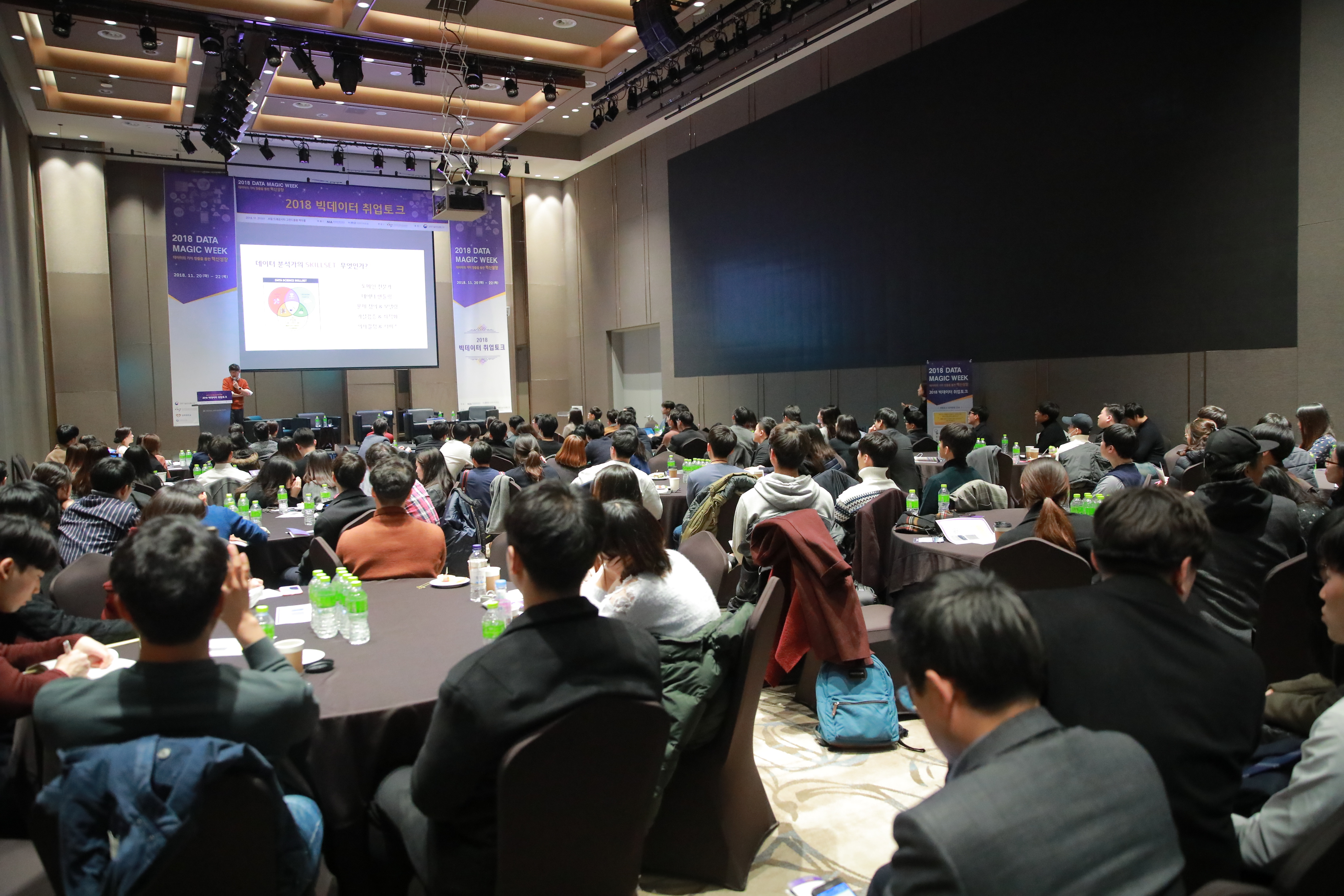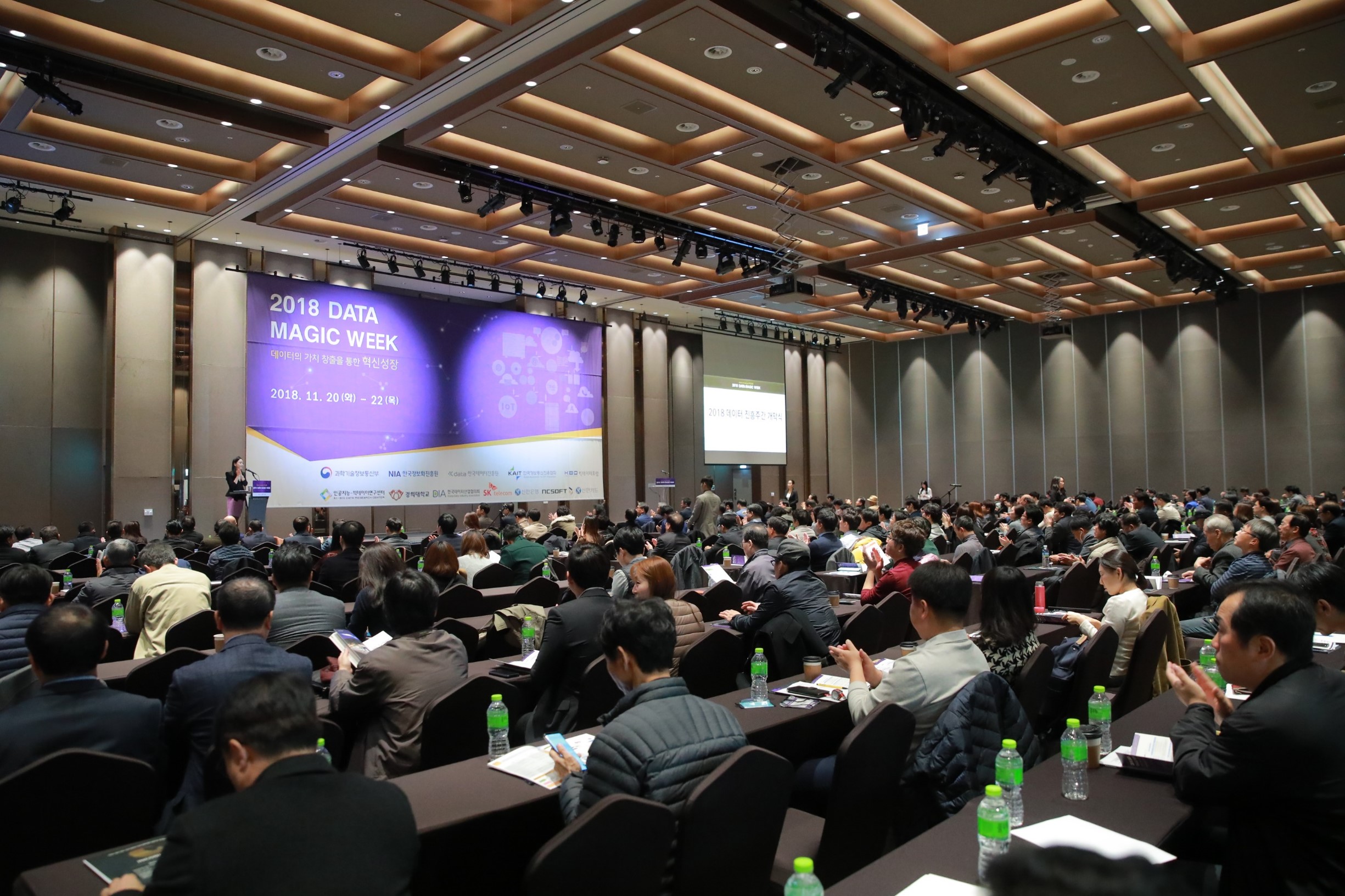 11월 26일에 시작되는 데이터 매직 컨퍼런스의 경우 해외 데이터 동향과 데이터 활용 성과 및 기업의 신규 비지니스 적용 사례를 공유하여 데이터 관련 국민들의 인식을 제고하기 위한 행사가 진행됩니다. 데이터 플래그십 전도사업과 중소기업 데이터 활용지원 사업 및 빅데이터 전문센터등 우수 사례를 공유하고 대외 확산을 위한 장을 마련하기 위한 대화가 진행됩니다.