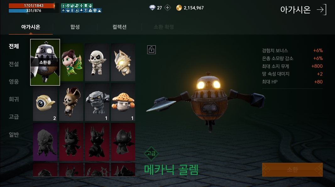 전투에 도움이 되는 아가시온을 수집하는 재미도 솔쏠한데요, 각각의 아기시온은 직접적인 전투에 나서지는 않지만 경험치 보너스라던가 은총 소모랑감소등 각각 보유하고 있는 능력치가 달라 이를 활용한 전략도 중요한 부분입니다. 아직은 초반이라 경험치 보너스를 많이 주는 아가시온을 우선적으로 사용하고 있지만 말이죠.