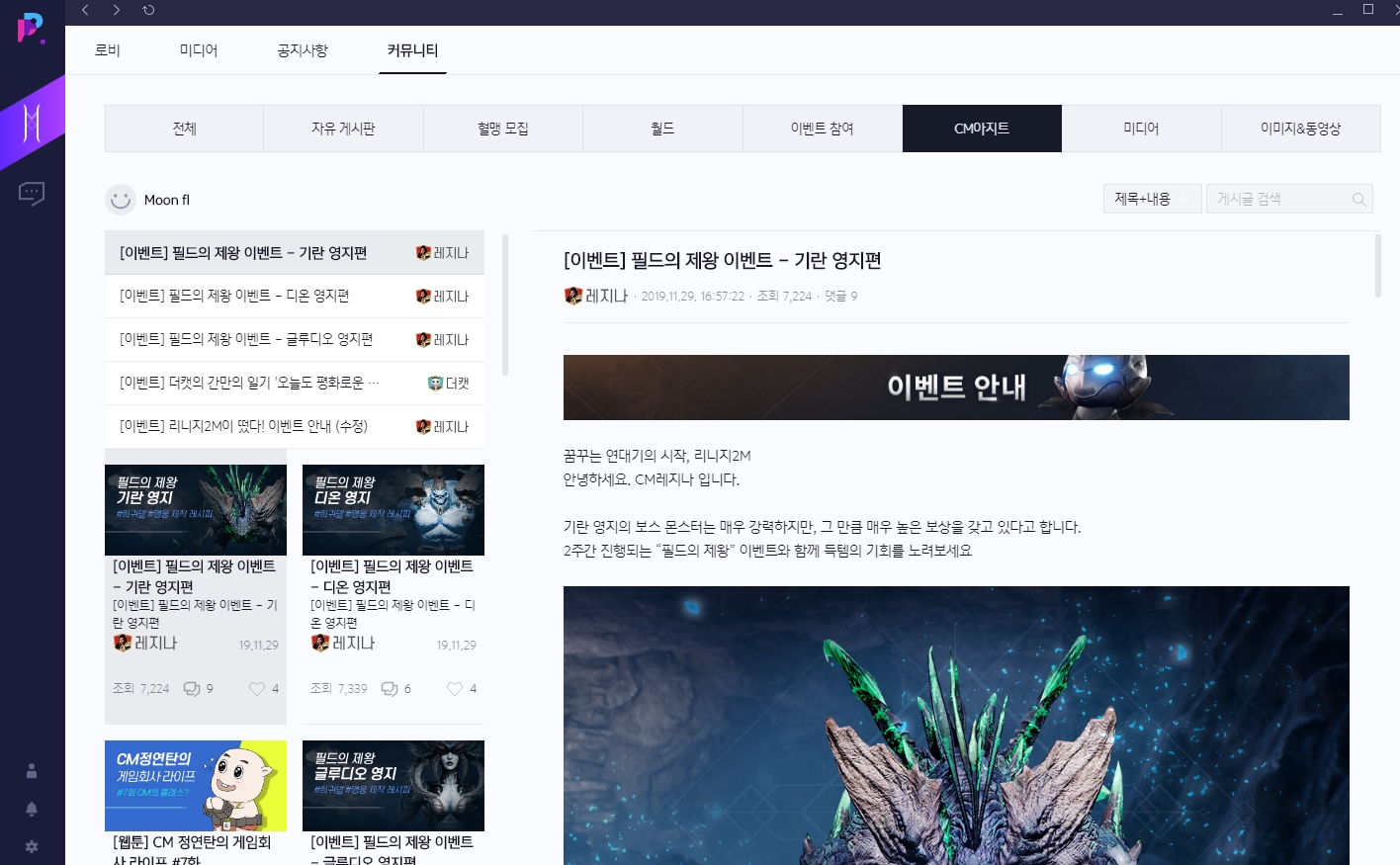 퍼플 앱 플레이어를 사용하게 되면 리니지2M을 즐기는 것 외에도 여려 편리한점을 가지고 있기도 합니다. 우선 게임 공지나 이벤트 소식을 확인하기 위해 공식 커뮤니티를 방문하거나 카페에 접속하지 않아도, 퍼플 앱 플레이어를 통해 한눈에 확인 가능합니다.