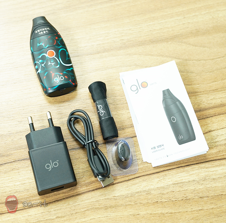 구성품은 무척 간단합니다. 루플라 한정판 에디션 글로센스 본체와 함께 충전을 도와줄 전원 케이블과 사용설명서. 그리고 보관이나 휴대할 때 흠이 생기지 않도록 도와주는 파우치와 사용설명서까지 간단해보이지만 필요한 물건들은 다 있는 구성으로 되어 있습니다.