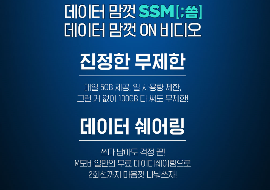 kt엠모바일에서 준비단 다양한 요금제 중에서도 데이터 맘껏 ON비디오의 경우 동일 제공량 일반 통신사요 요금제를 비교했을때 약 30%이상 저렴한 비용으로 사용 가능합니다. 또한 데이터 쉐어링 서비스로 평생 무료 이용가능한데요, 무료 데이터 쉐어링 서비스의 경우 알뜰폰에서 무료로 제공하는 곳이 없는 만큼 온 가족이 함께 데이터를 공유할 수 있기도 합니다.