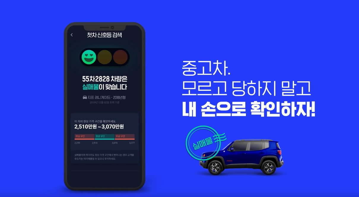 첫차 앱은 중고차 시장의 판도를 바꿀 정도의 기술력을 바탕으로 만들어 져 있다고해도 과언이 아닐 정도인데요, 무엇보다 신호등 검색을 통해 허위 매물여부를 판단할 수 있다는 점은 구매자 입장에서 그동안 정말 필요했던 기술이 아닐까 싶기도 합니다.
