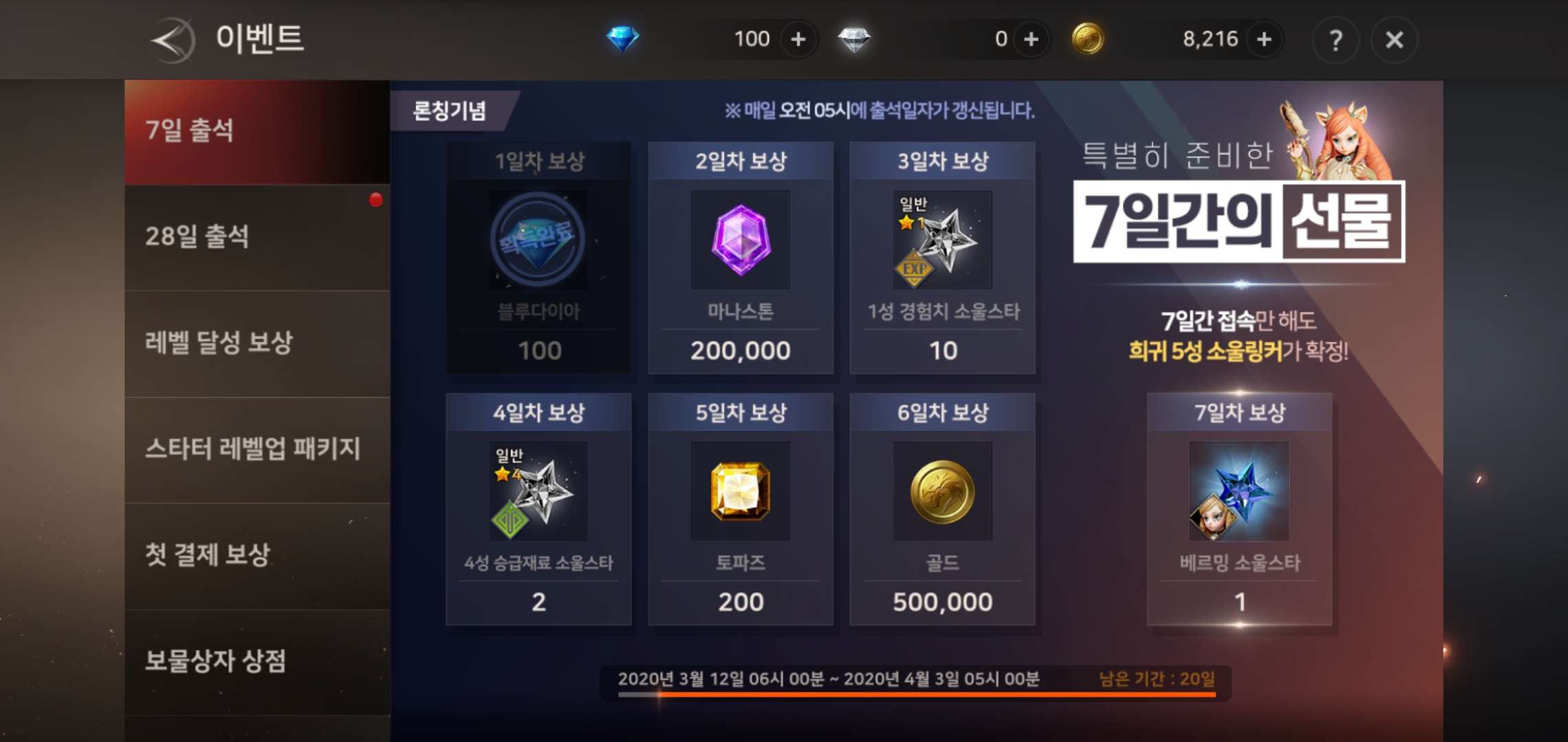 기존 MMORPG와는 차별화된 배틀로얄 시스템의 조합으로 특별함을 더해주는 모바일게임 기대작 MMORPG A3 스틸얼라이브. 현재 론칭기념 특별한 이벤트가 진행 중입니다. 7일출석부터 28일출석, 레벨달성, 보물상자 이벤트등등 서둘러 접속해 풍성한 아이템도 챙기고 긴장감 넘치는 플레이를 즐겨보시길 바랍니다.