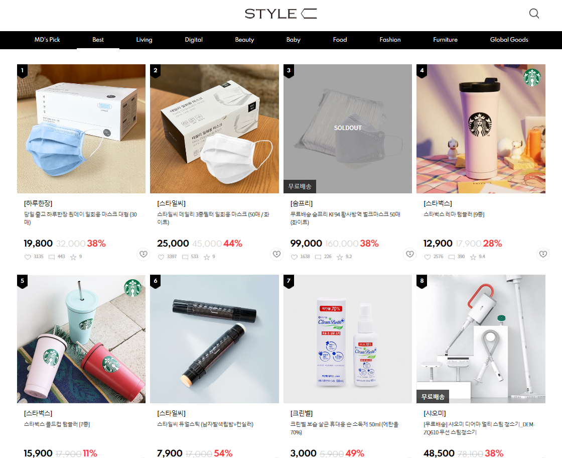 스타일씨의 경우 일회용마스크 외에도 생활 속 필요한 다양한 제품들로 구성되어 있습니다. 제품들 금액도 할인이 많이 되어 보다 저렴한 비용으로 구매 가능한데요, 샤오미 제품의 경우 전 제품 무료배송으로 구매 가능하고, N페이 연동으로 간편하게 구입 가능한점도 장점입니다.