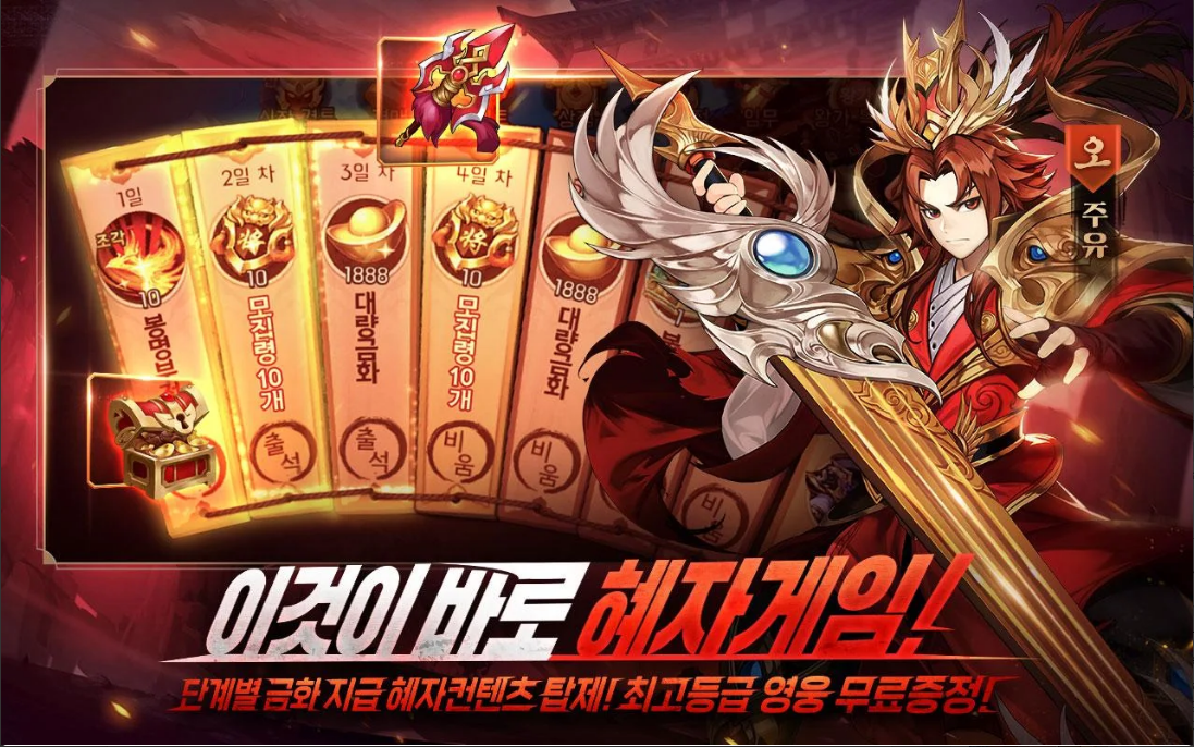 삼국지 장수들의 화려한 변신과 다양한 협동공격과 조합전투가 어우러진 그랑삼국 사전예약에 참여하고 달려야 하는 이유 바로 최대혜택이 주어지기 때문입니다. 7일간 접속시 최대 5664금화, 20회 명장등용권, 신화 코스튬까지 지급하는데요, 7일만 출석하면 역대금 최대 혜택을 모두 받고 시작할 수 있는 점도 빼 놓을 수 없는 요소입니다.