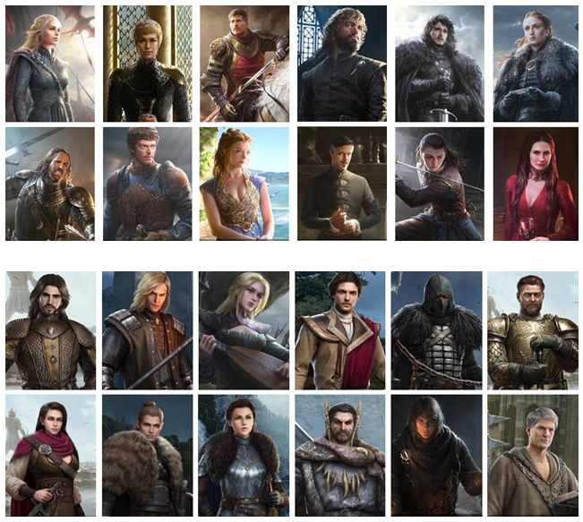 왕좌의 게임: 윈터 이즈 커밍을 기대하는 가장 큰 이유 중 하나는 바로 캐릭터이다. 원작에 등장한 매력적인 캐릭터 모습을 그대로 게임속으로 옮겨온 점인데, 드라마 후반부를 기준으로 한 모습들이 매력적이다. 각각의 캐릭터 일러스트의 경우 실사와 비슷한 모습을 하고 있는데, 최대한의 현실성을 보여주기 위한 노력을 기울였다고 하는군요.