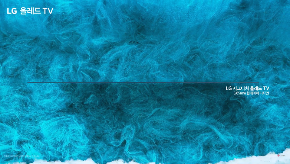 얇은 배젤과 두께를 연상하는 듯 자연에 그대로 녹아든 것한 모습으로 등장하는 젶무은 웰페이퍼 디자인으로 유명한 LG 시그니처 올레드 W 제품입니다. 극강의 얇은 두께를 보유하고 있기 때문에 실제 설치한 제품을 보고 매립했다는 생각을 가진 사람들이 있을 정도라고 합니다.