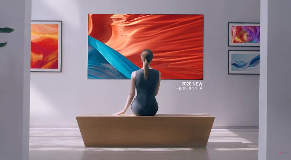 LG 올레드 TV CF 시작과 함께 한 여성이 갤러리에서 액자속 그림을 보는 장면이 등장하는데요, 자세히 들여다 보면 액자가 아닌 LG 올레드 TV임을 알 수 있습니다. LG 올레드 TV는 2020년 갤러리 디자인을 새롭게 선보이고 있어 제품 뒷면도 평평하기 때문에 두드러짐 없는 두께를 가지고 있어 벽면에 밀착 설치가 가능합니다.