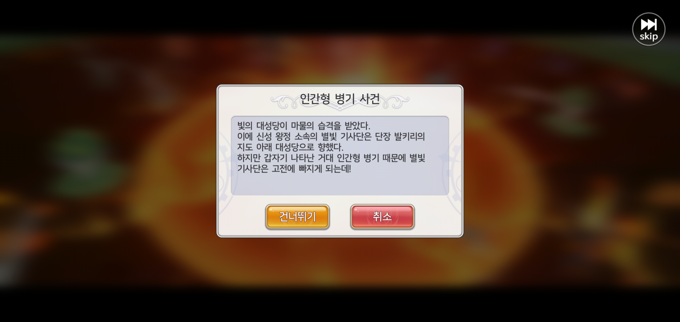 가디스 오브 제네시스는 탄탄한 스토리를 바탕으로 플레이를 즐길 수 있도록 구성되어 있습니다. 초반 애니메이션 또한 스토리를 시작하는 첫 단계라고 보면 되는데요, 기다릴 틈이 없는 유저를 위해 빠르게 SKIP 할 수 있도록 되어 있습니다. 단 스토리를 알고 플레이 하는게 더 재미있는 만큼 건너뛰기를 선택하더라도 간략한 스토리를 알려주는건 놓치지 않고 말이죠.