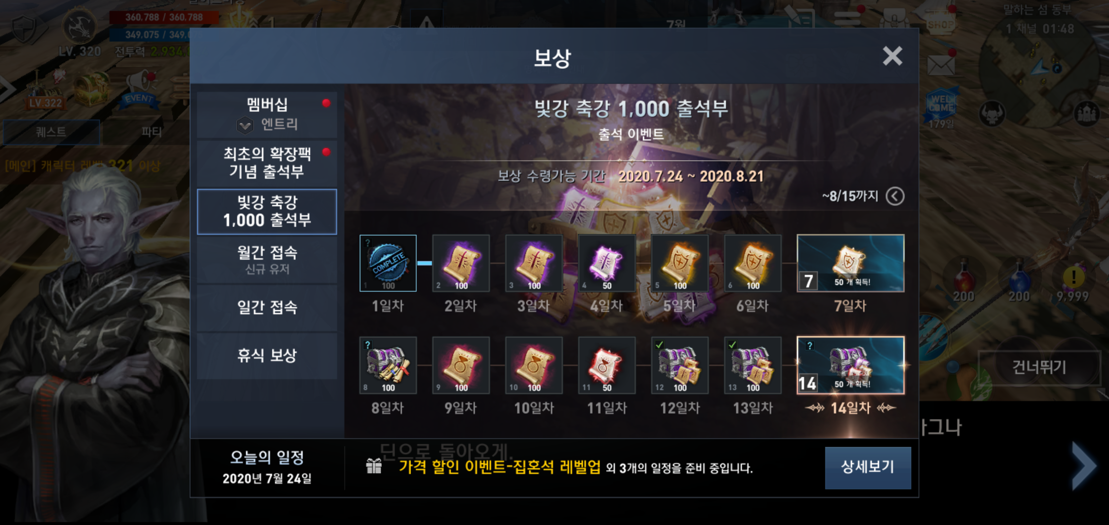 레벨업 이벤트도 함께 진행되고 있는데요, 322레벨을 시작으로 레벨업을 할 때 마다 주어지는 선물이 어마어마 합니다. 레벨업을 하면서 획득할 수 있는 아이템들은 450레벨까지 이어지기 때문에 부스팅이 적용되는 지금 플레이를 진행하면 거의 모든 혜택을 다 받을 수 있다고 해도 과언이 아닐 정도 입니다.