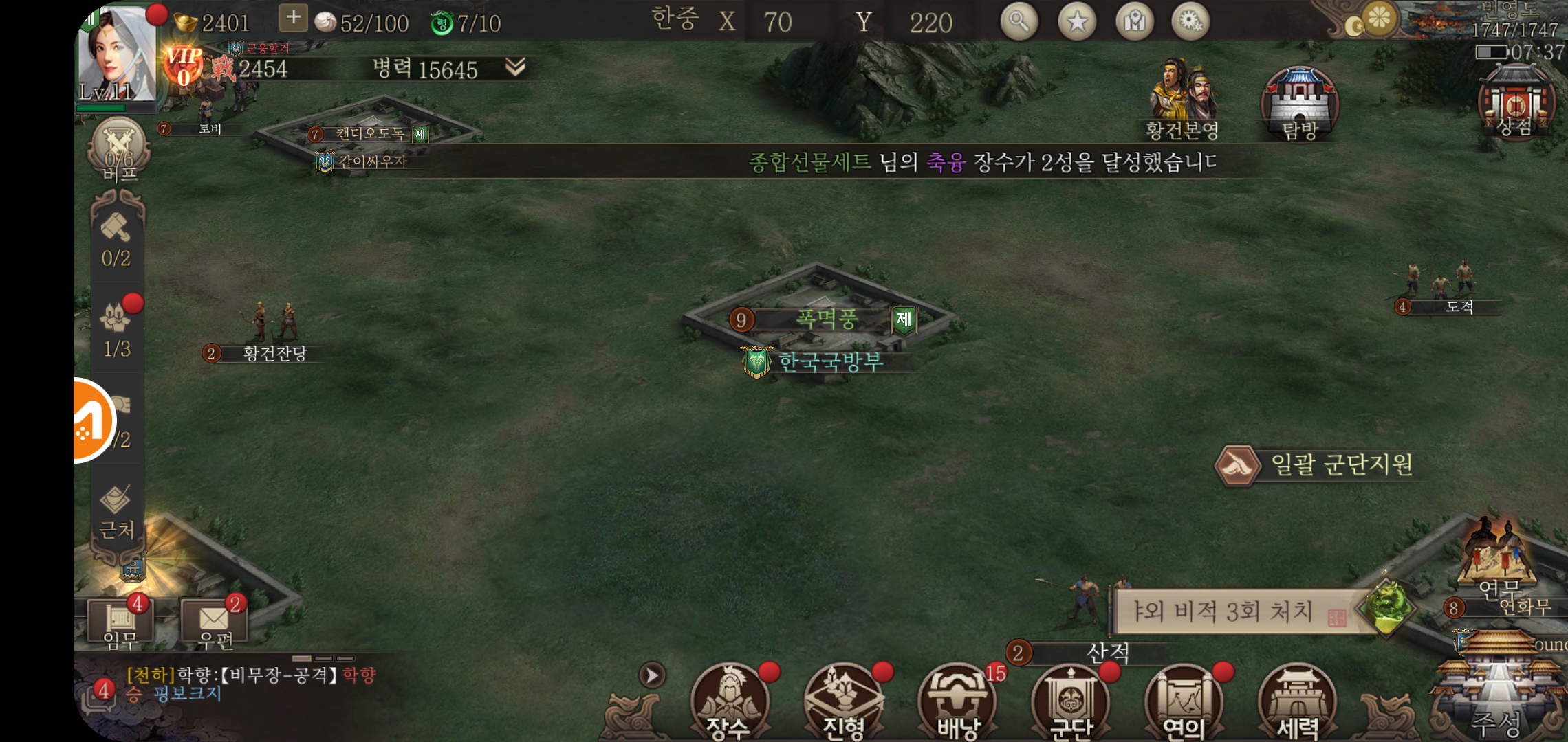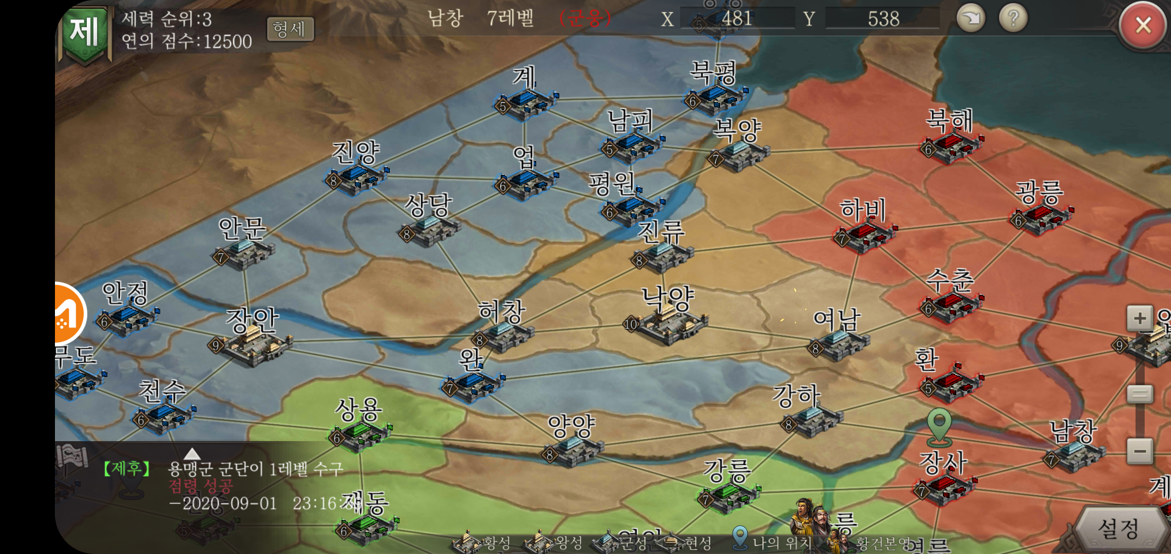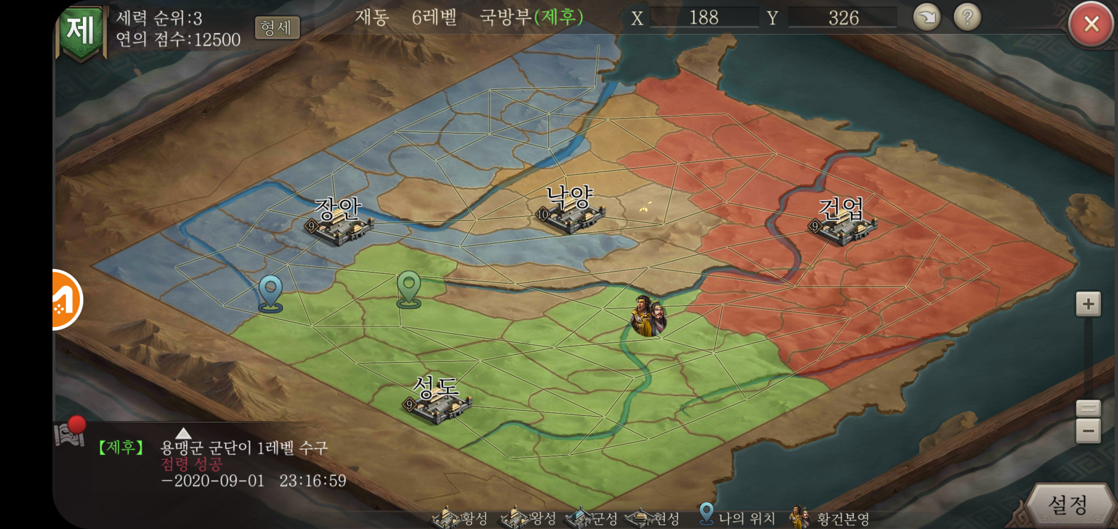 주성레벨업과 장수를 획득하고 병사를 훈련시키는 가장 큰 이유. 바로 천하 통일을 목적을 두고 진행하기 때문인데요, 천하 지도를 통해 나라별 점령상태는 어떤지, 어디를 공략하면 좋을지에 대한 정보를 큰 그림을 그려볼 수 있습니다. 다만 단순히 땅따먹기 형태의 전투가 진행되는 것이 아니라 세력도 중요한 만큼 많은 것을 챙기고 신경써야 하는 것이 중요합니다.
