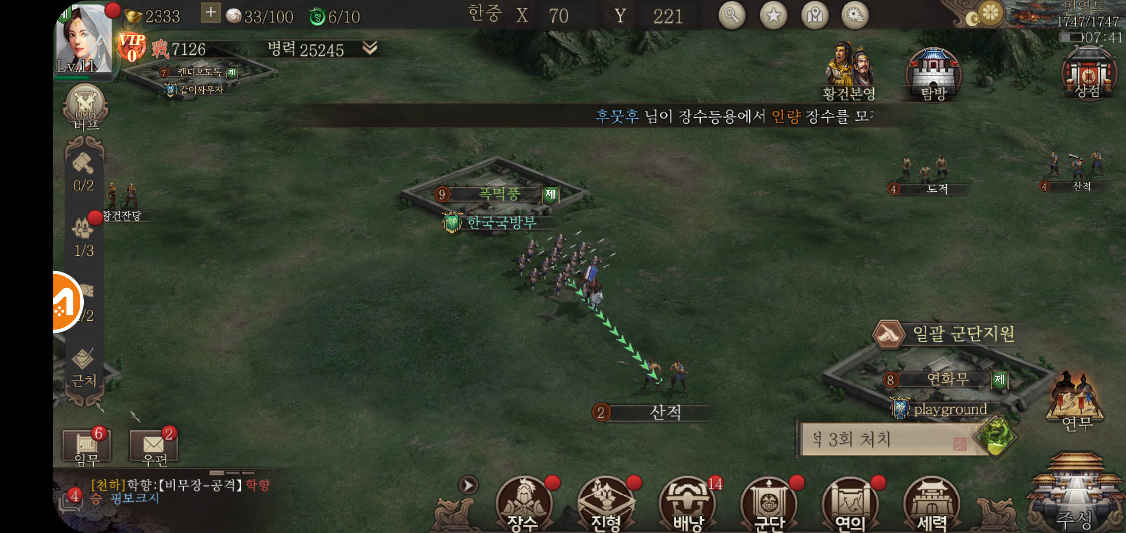 모바일SLG추천 삼국지전략이 재미있는 것 중 하나가 천하로 나아가 사냥을 하거나 적진과의 교전도 가능하지만, 연무를 통한 스테이지 전투가 가능하다는 점입니다. 연무에서 진행되는 전투는 각 장수들이 보유하고 있는 스킬과 병종의 전투 모습을 고스란히 확인할 수 있는데요, 사실적인 그래픽 연출로 생동감 넘치는 전투를 확인할 수 있을 정도입니다.