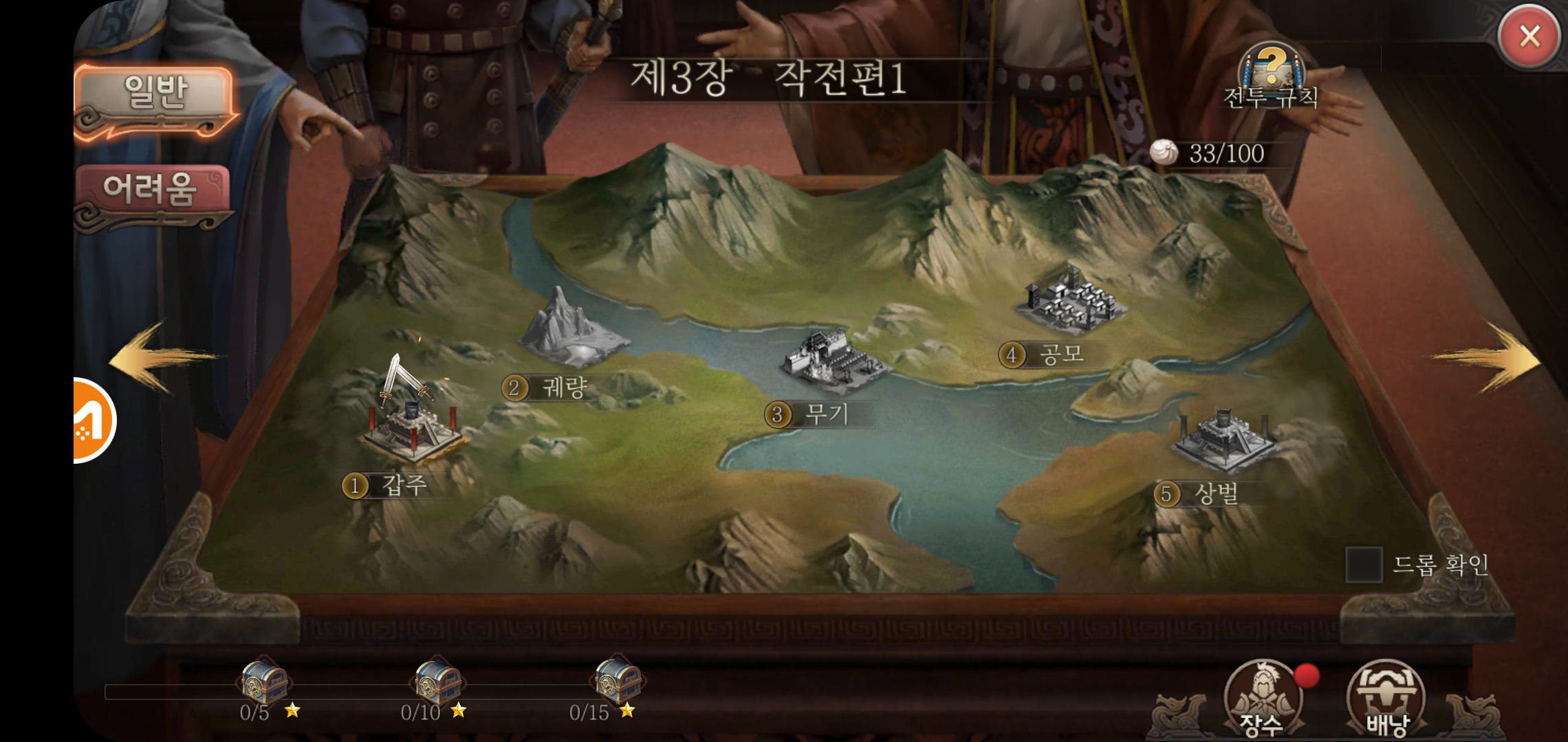 삼국지책략은 실제 삼국지역사를 기반에 유저가 개입하는 스토리를 가지고 있습니다. 초반 장수들의 전투 장면과 대화를 보면서 앞으로 펼쳐질 전투에 대한 기대감도 들었습니다. 탄탄한 스토리를 가진 삼국지 스토리에 변화를 줄 수 있다고 생각하니 먼가 새로운 기분도 들고 말이죠.