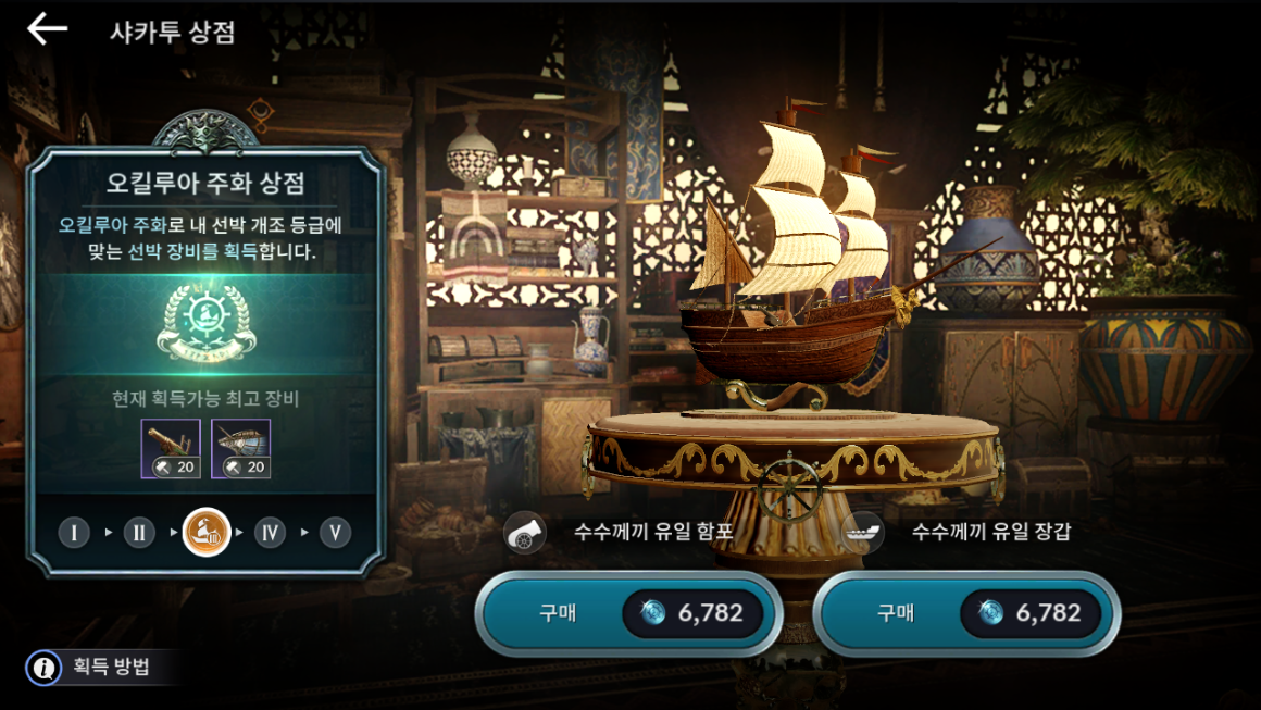 칸을 비롯해 우두머리 보상을 통해 획득 가능한 오킬루아 주화는 업데이트 된대부호 샤카투가 대양에 관심을 가지고 오픈한 상단인 사카투 상점을 통해 이용 할 수 있습니다. 사카투 상점에서 오킬루화 주화 상점에 진입하면 보유한 오킬루화 주화를 이용해 선박 개조 등급에 맞는 선박 장비를 획득할 수 있어 이를 활용하는 것도 중요해 보입니다.