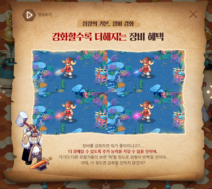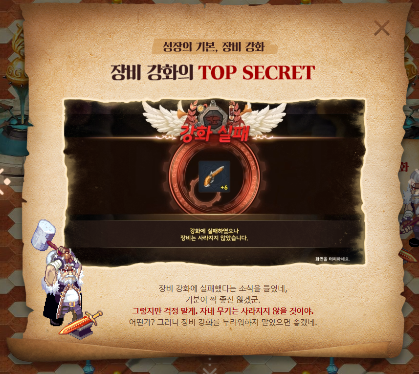 그리고 놓칠 수 없는 정보는 바로 아이템 강화입니다. 아이템 강화에 실패하더라도 아이템이 사라지지 않는 다는 점입니다. 아무래도 장비를 강화 할 수록 좋다는건 잘 알고 있지만, 강화에 실패해 증발하면 엄청난 속상함이 쓰나미처럼 밀려오는데요, 트릭스타M에서는 마음 놓고 장비 강화를 진행해도 될 것 같습니다.