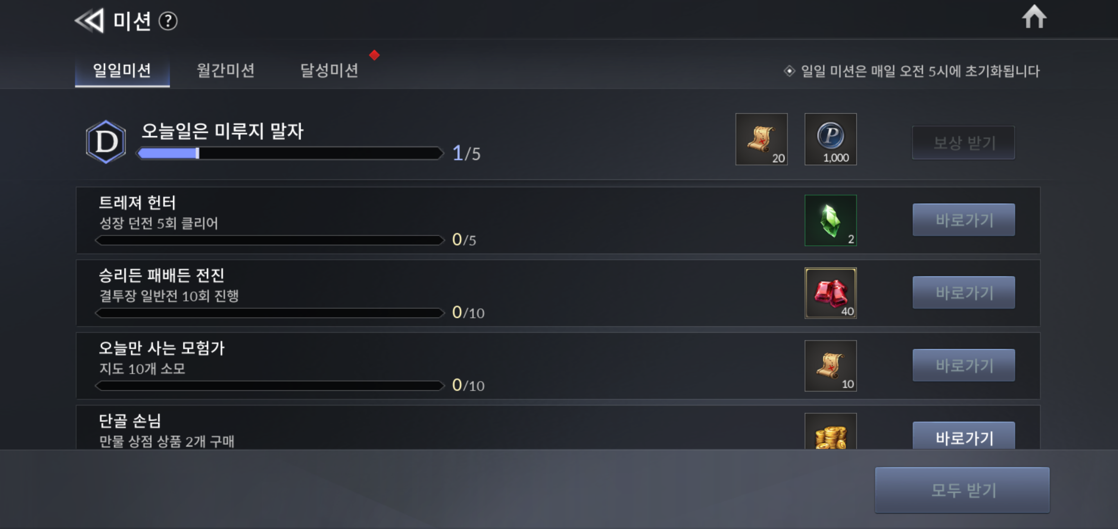 초반 빠르게 달리는 것도 좋지만, 튜토리얼을 하면서 아이템을 획득해 영웅들을 한층 강하게 만들어 주는 것도 필요합니다. 또한 주어지는 미션을 클리어 하면서 추가 보상을 획득하는 것 도 필요한데요, 보다 많은 영웅과 성장을 위해선 퀘스트 외에 미션을 클리어 하면서 보상을 챙기는 것도 잊지 말아야 합니다.