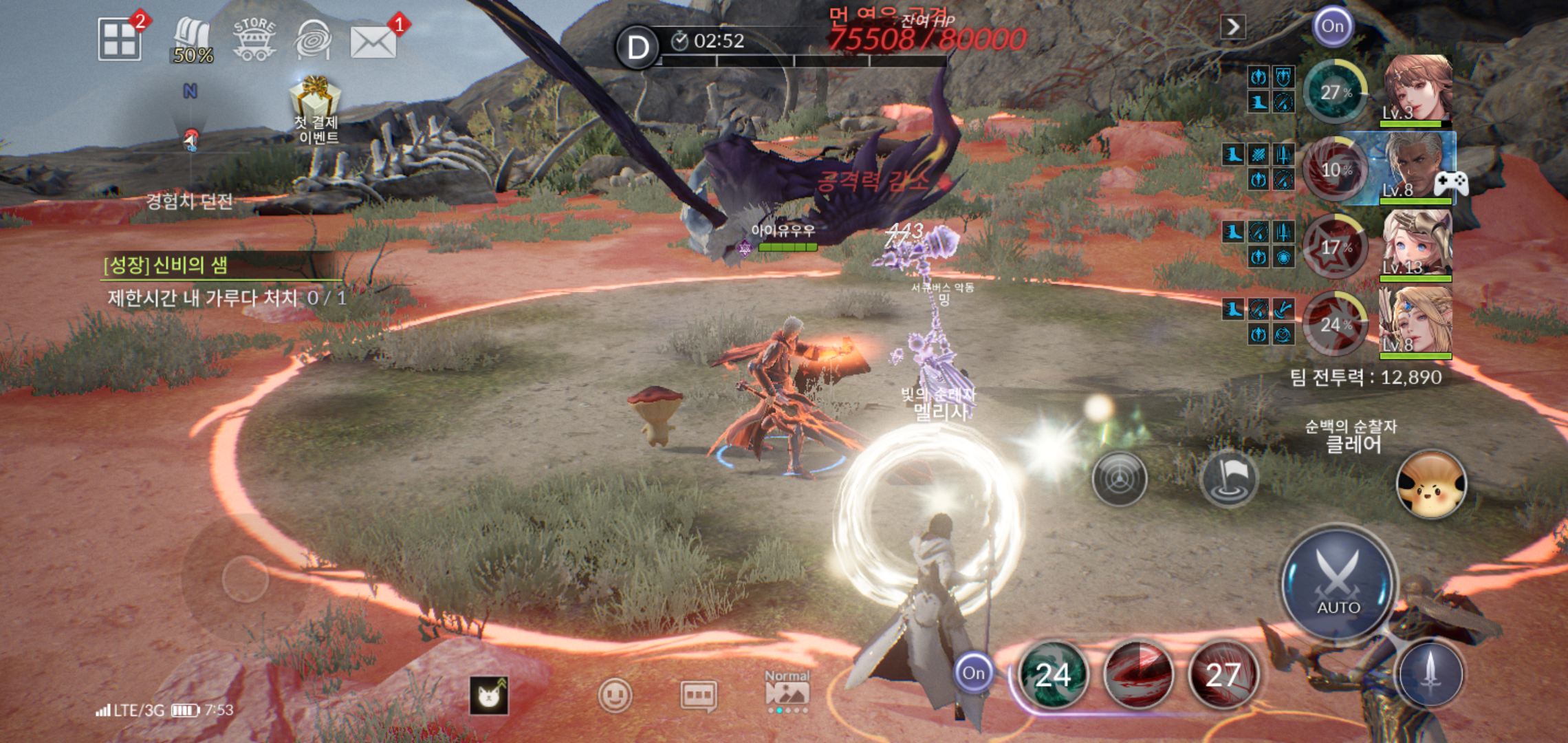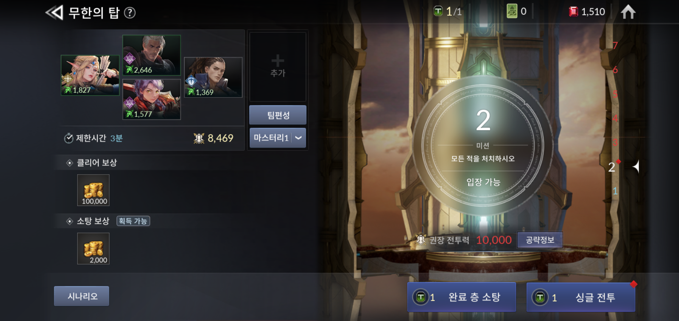 미션을 따라 진행하면서도, 추가로 경험치나 골드등 필요한 아이템 획득이 가능한 무한의 탑이나, 경험치 던전을 챙겨주는 것도 잊으면 안됩니다. 던전의 경우 하루에 주어진 횟수만큼 진행 가능하기 때문에 그리 오랜 시간이 걸리지 않아 진행하기에 무리되지 않을 정도이니 부담없이 즐기면 될 것 같습니다.